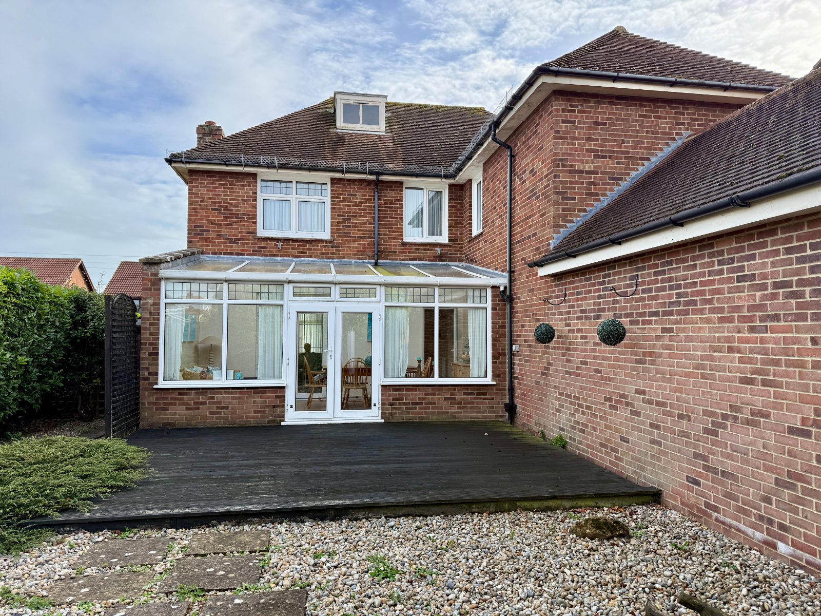 Externally, the property enjoys a low maintenance rear garden with paved and decked areas, offering a sunny westerly aspect ideal for afternoon and evening sun. To the front, the property is nicely set back from the road and features off-road parking and mature shrub borders.