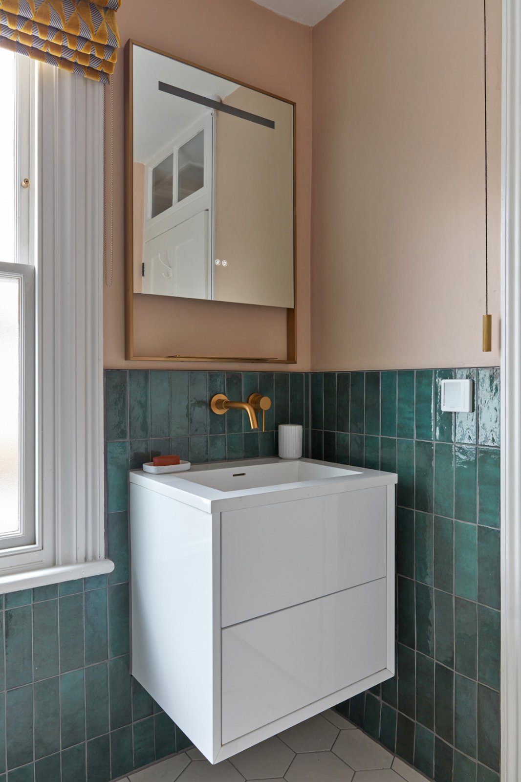 the quality of the Lusso Stone fixtures is evident immediately. The double bedroom to the front of the house again enjoys a light southerly aspect, as well as benefitting from built-in wardrobes