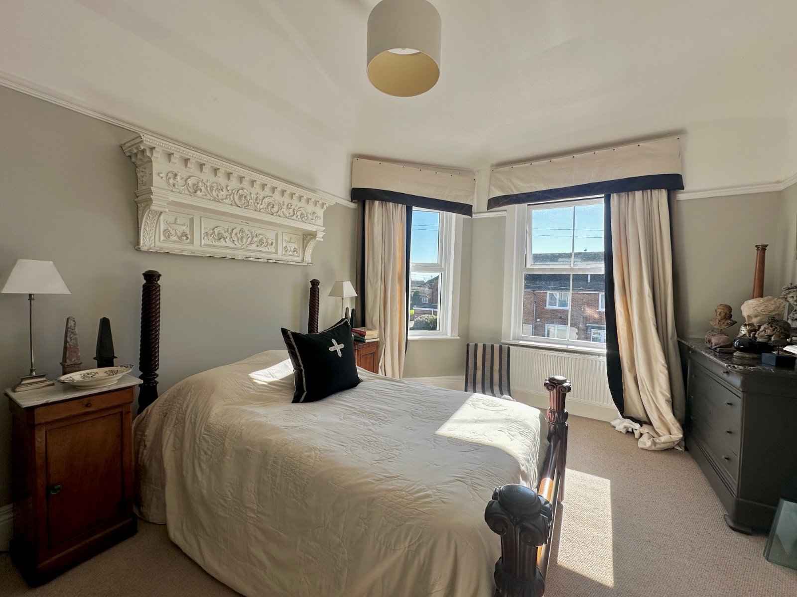 From the landing, a few steps up lead to a double bedroom. Also on this level are the main bedroom and a generous sitting room, both featuring bay windows, and enjoying an elevated aspect.