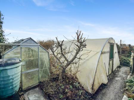 Area of lawn to front with path leading to front door and to side. Side garden with oil tank, exterior boiler and patio area leading to shed with further gate to rear garden. The rear garden has a large patio area perfect for entertaining and enjoying the sunshine, lots of planters with a range of shrubs being fully enclosed with fencing, Further fenced area with greenhouse and polytunnel with hedge boundaries. Further fenced off area with