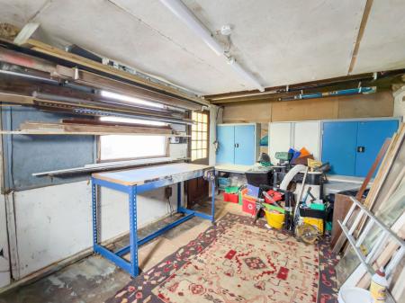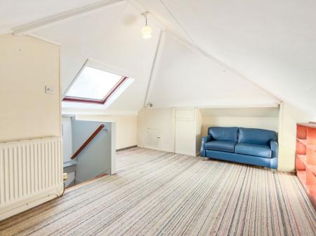2 radiators and built-in shelving with 2 skylights, window to rear and double doors opening to rear.
