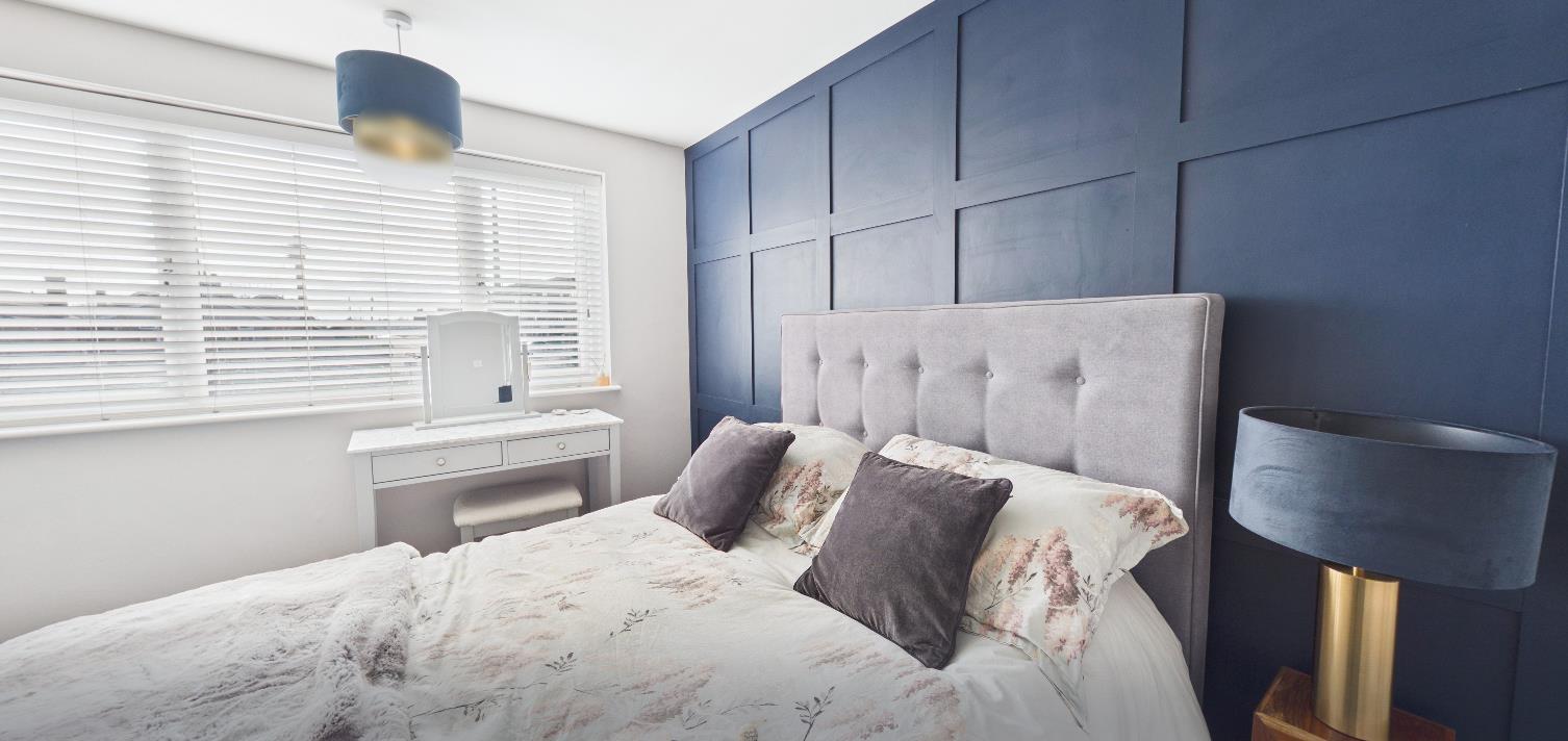 Bedroom One - 3.99 x 3.51 (13'1" x 11'6") - With central heating radiator, feature wood panelled wall and double glazed window to front.