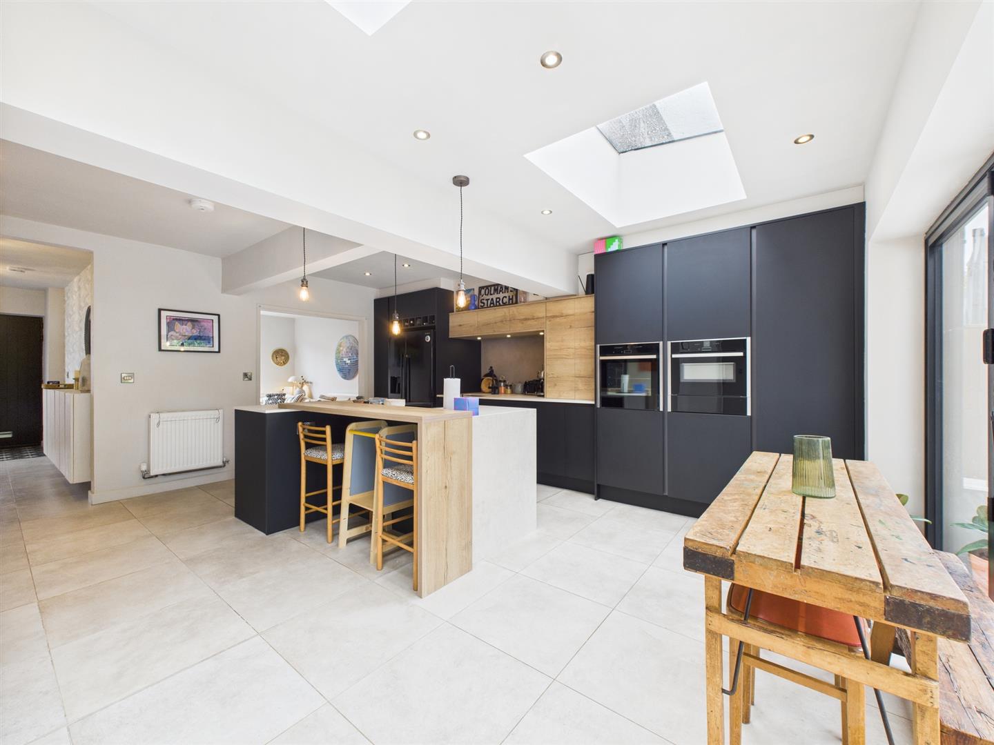 - Open Plan Living Kitchen/Dining Room with Feature Roof Lights with Bi-Fold Doors