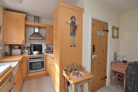 Kitchen - 3.55m x 1.98m ( 11'7" x 6'5") - With Belfast sink, chrome period-styled mixer tap, base units with drawer and cupboard fronts, tiled splashbacks, wall and base fitted units with matching beech worktops, built-in stainless steel four-ring electric hob with stainless steel extractor hood over, built-in stainless electric fan-assisted oven beneath. Concealed Worcester 28CDI combination boiler, concealed worktop lights, integrated fridge and freezer, plumbing for washing machine and dish washer, radiator and multi-paned character window.