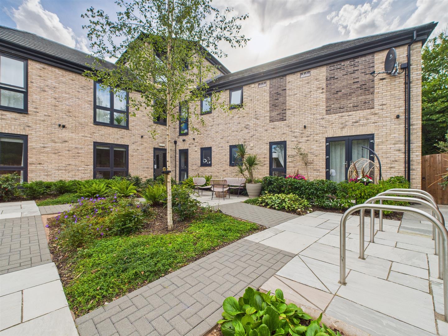 - Communal Landscaped Courtyard Garden with Seating Areas, Planting & Cycle Bike Stand