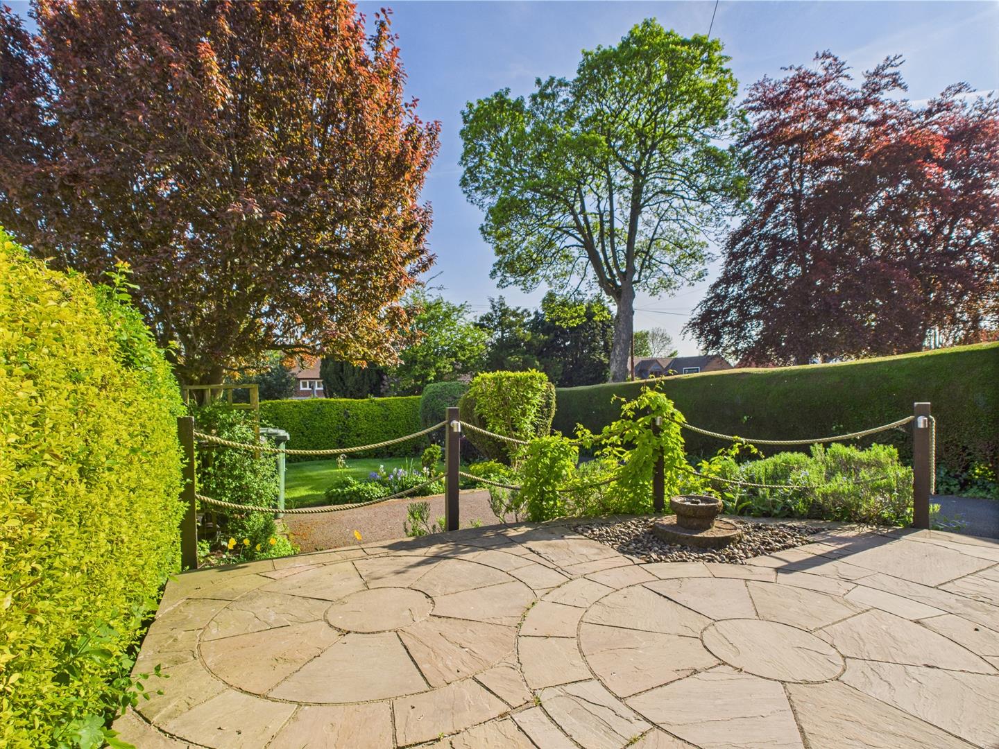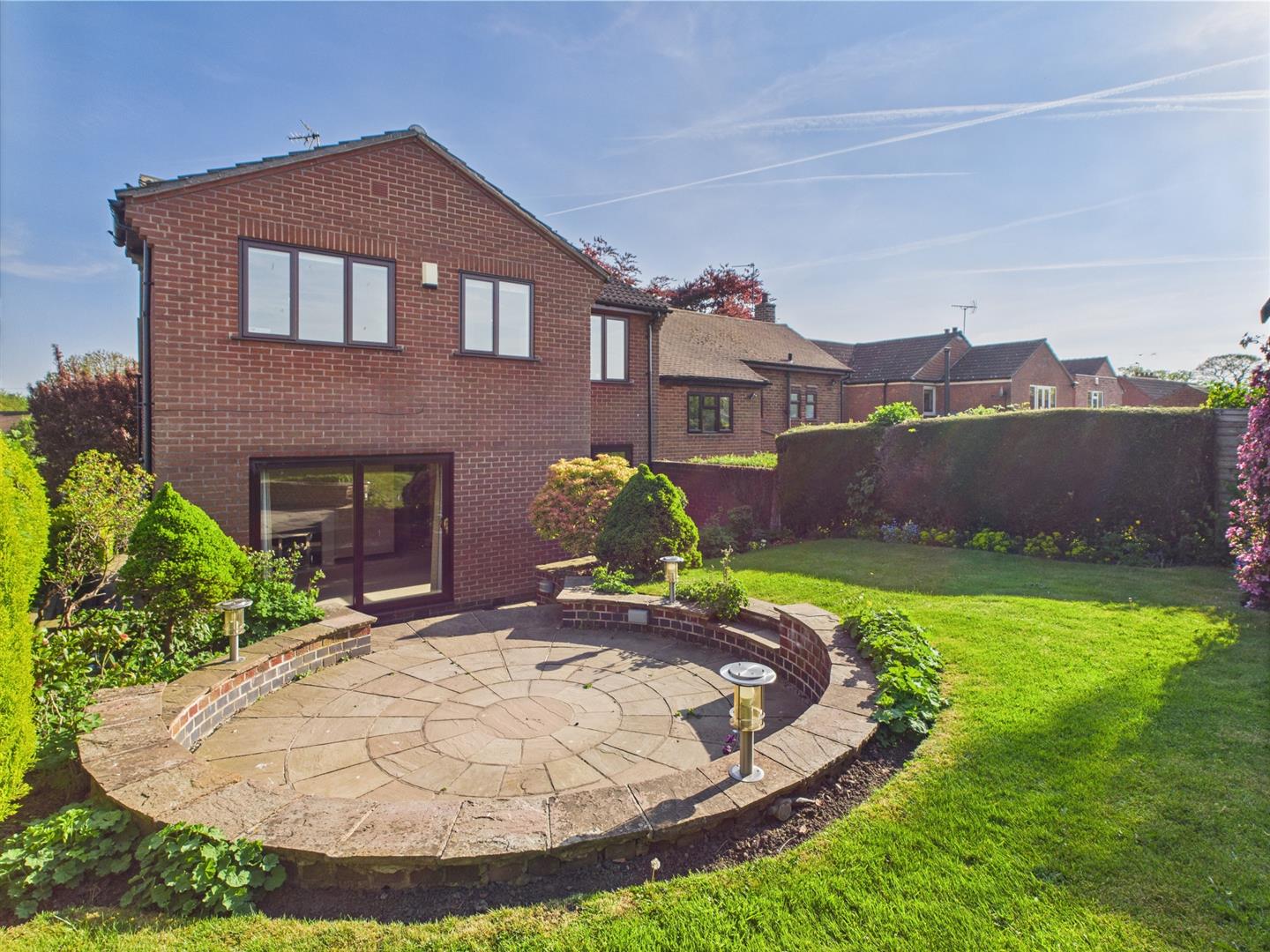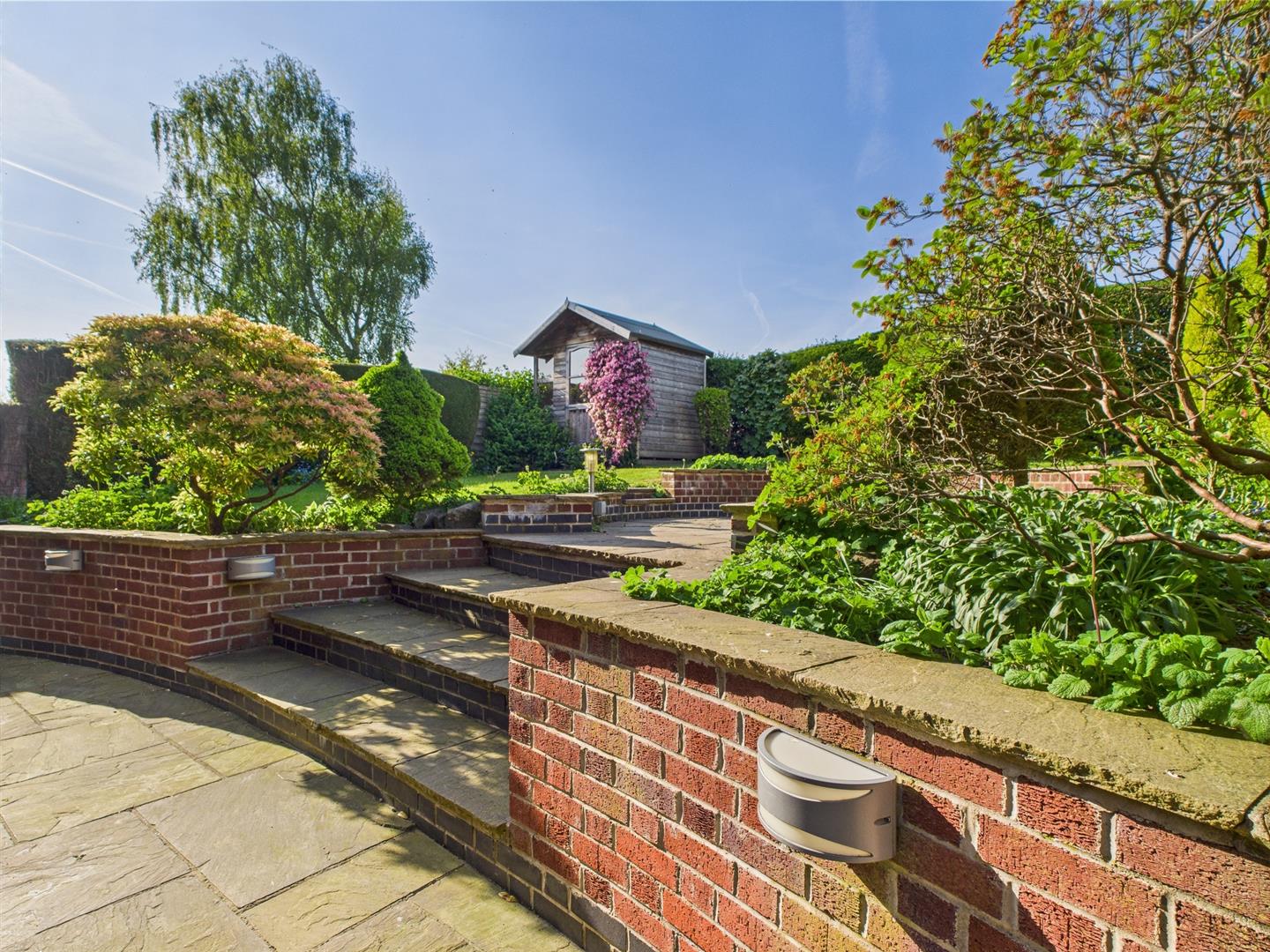 - Front & Rear Gardens with Indian Stone Patios & Timber Garden Shed