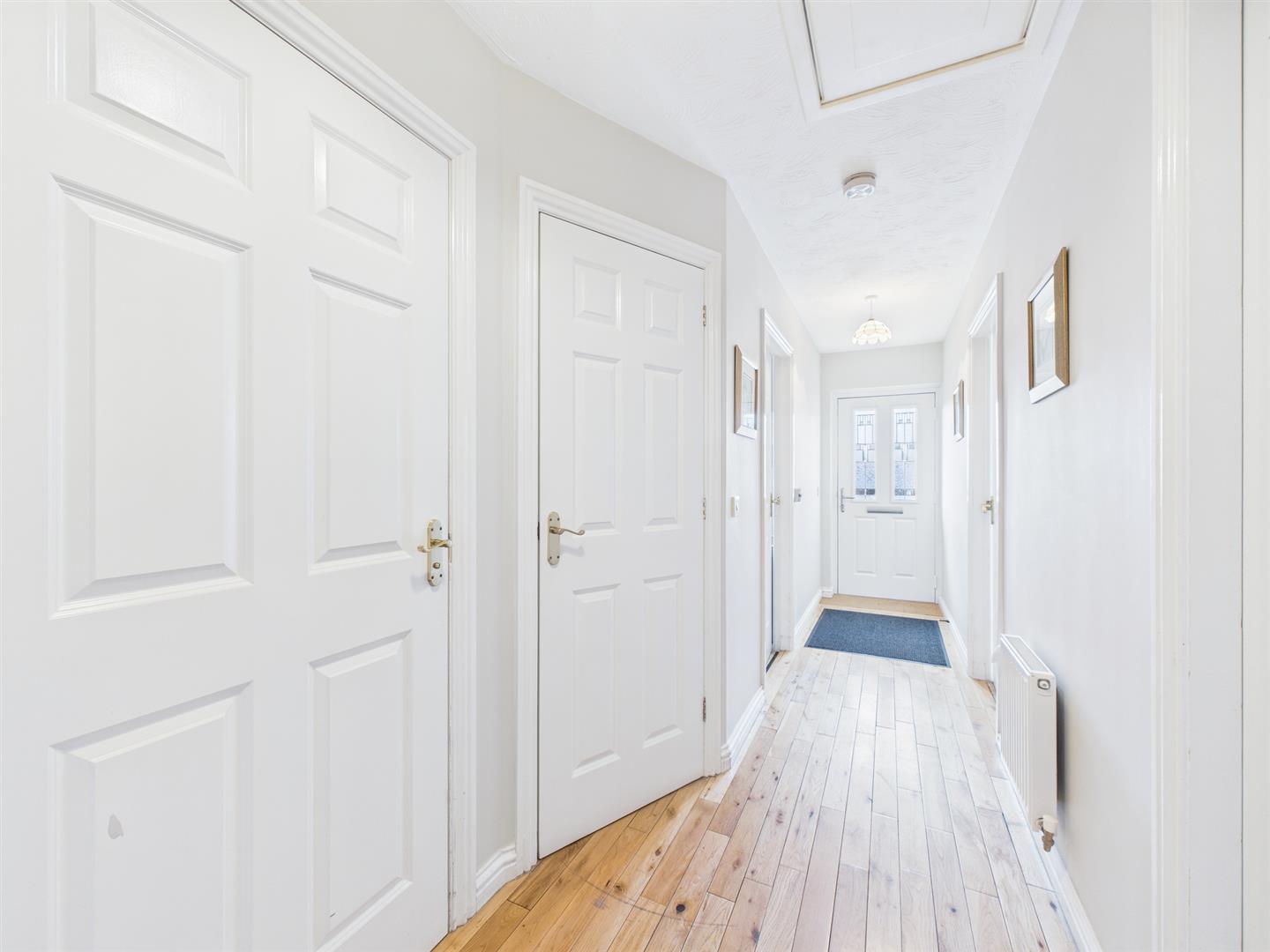 Spacious Entrance Hall - 6.14 x 1.06 (20'1" x 3'5") - A panelled and glazed entrance door provides access to spacious entrance hall with central heating radiator, oak flooring and two useful storage cupboards.