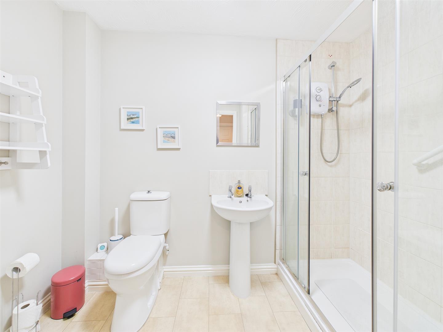 Bathrooom - 2.77 x 1.51 (9'1" x 4'11") - Comprising low flush WC, pedestal wash handbasin, good sized shower cubicle and chrome towel radiator.