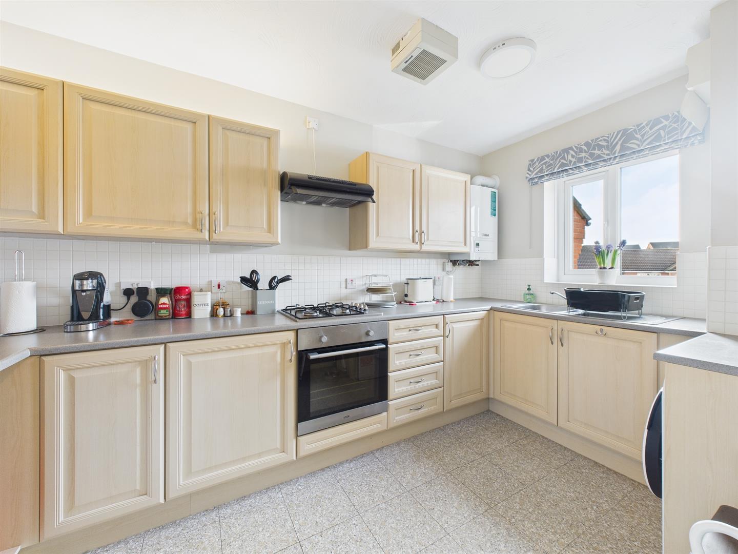 Breakfast Kitchen - 3.80 x 2.36 (12'5" x 7'8") - Comprising granite effect worktop, tiled surround, inset stainless steel sink unit, fitted base cupboards and drawers, complementary wall mounted cupboards, inset four plate gas hob with extractor hood over and built-in oven beneath, appliance space suitable for fridge freezer and washing machine, wall mounted Vaillant boiler, central heating radiator and double glazed window to front.