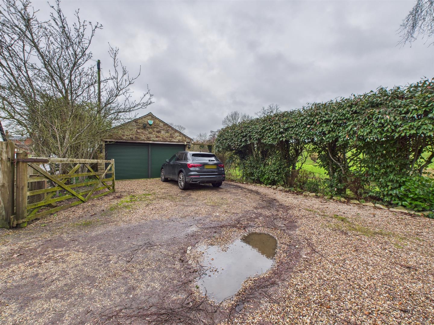 - Double Garage with Electric Doors, Power, Lighting & Gravel Driveway with Wooden Gates