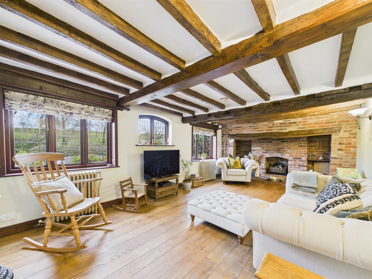 - Spacious Living Area with Dual Fireplaces & Oak Floorboards