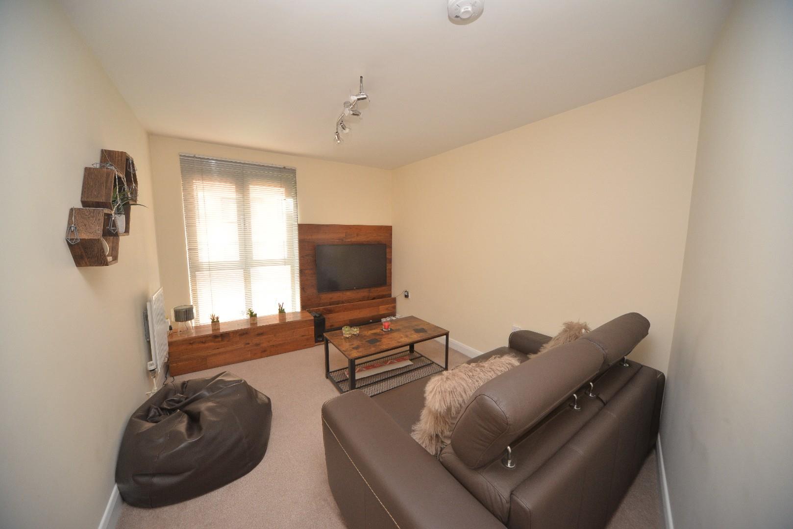 TV point, central heating radiator, wood effect laminate flooring, aluminium double glazed windows to the rear elevation and wall mounted boiler cupboard housing the combination boiler.
