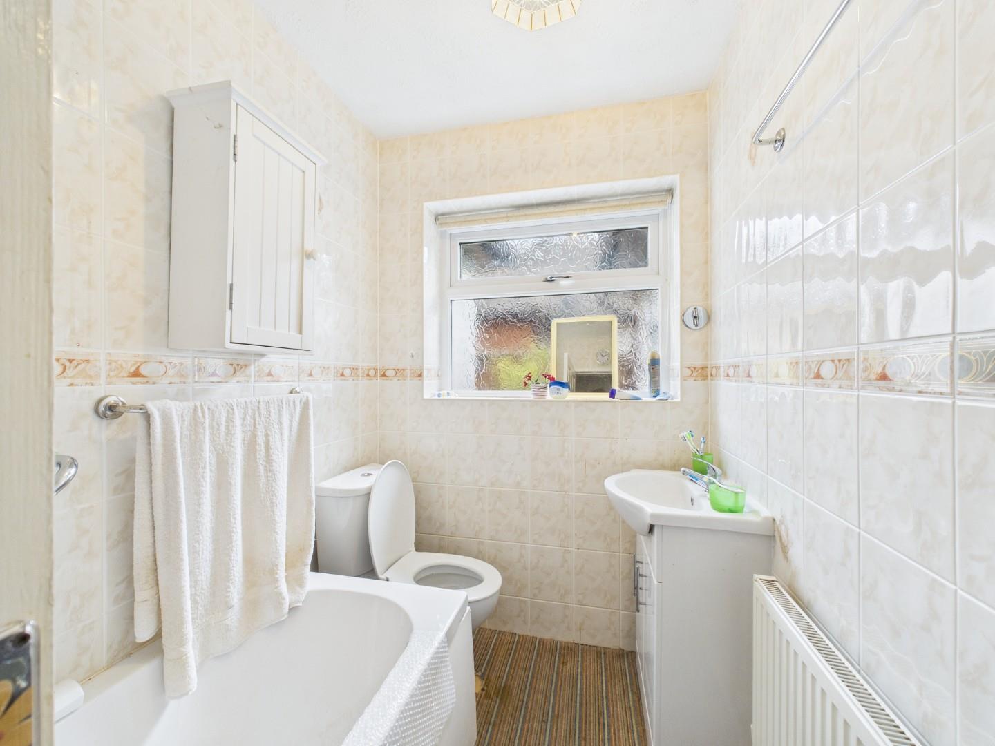 Bathroom - 2.38 x 1.52 (7'9" x 4'11") - With an obscured glass uPVC window to face the side aspect, this bathroom is fitted with a three piece suite to include a dual flush WC, wash basin with mixer tap and vanity cabinet underneath and a pannelled bath with thermostatic shower over.