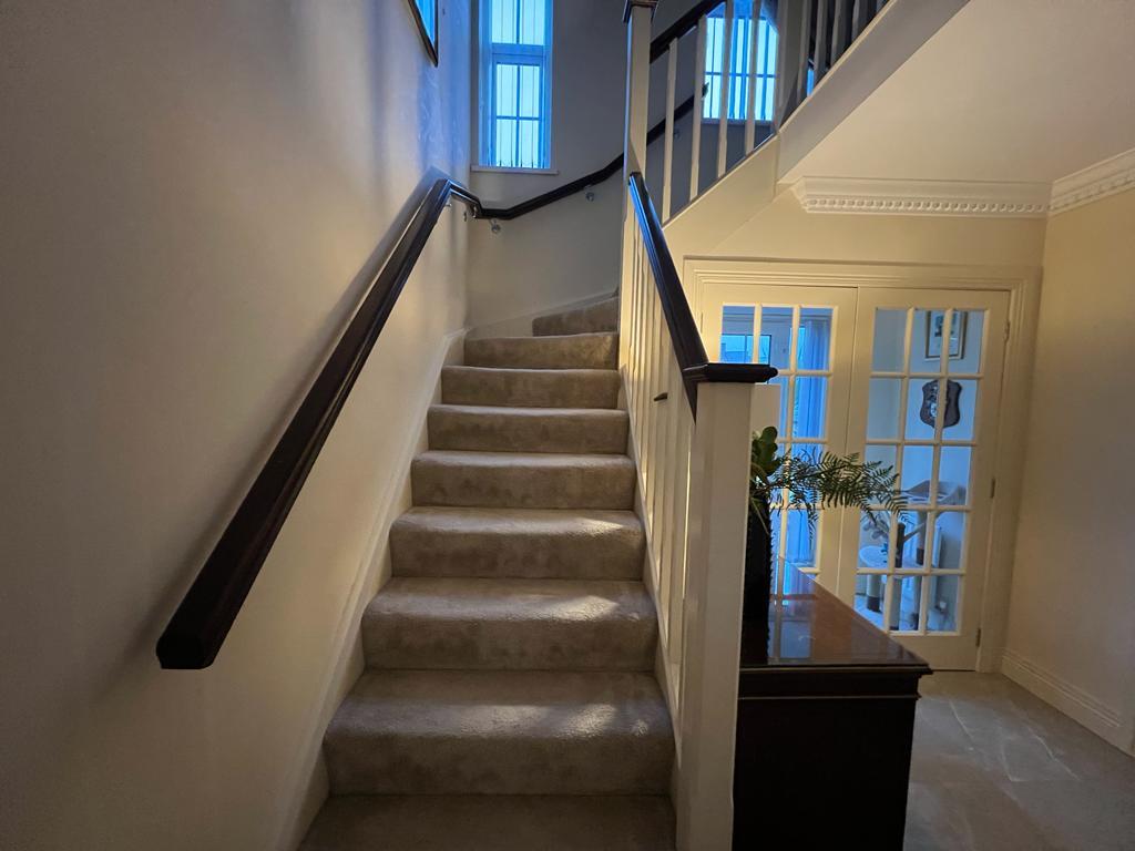 Spacious landing having ceiling cornicing and centre rose, double hotpress,