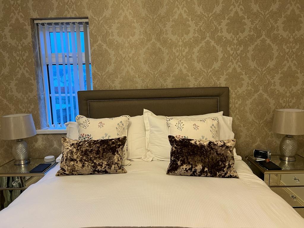 8.97m' x 4.14m wp (29'5' x 13'7 wp) - Having excellent range of eye and low level units 1 1/2 bowl stainless steel sink unit with mixer taps; integrated dishwasher; space for American style fridge freezer; hob, double oven; extractor fan set in matching canopy; granite worktops; tiling between units; tiled floor; ample space for dining; recessed uplighters; french doors to rear.