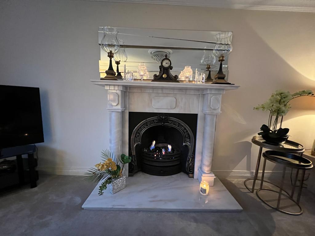 6.12m' x 4.60m' into bay (20'1' x 15'1' into bay) - Magnificent marble fireplace with marble hearth; gas inset; ceiling cornicing with centre rose; double doors to Kitchen/Dining