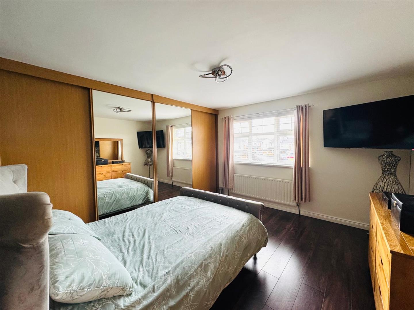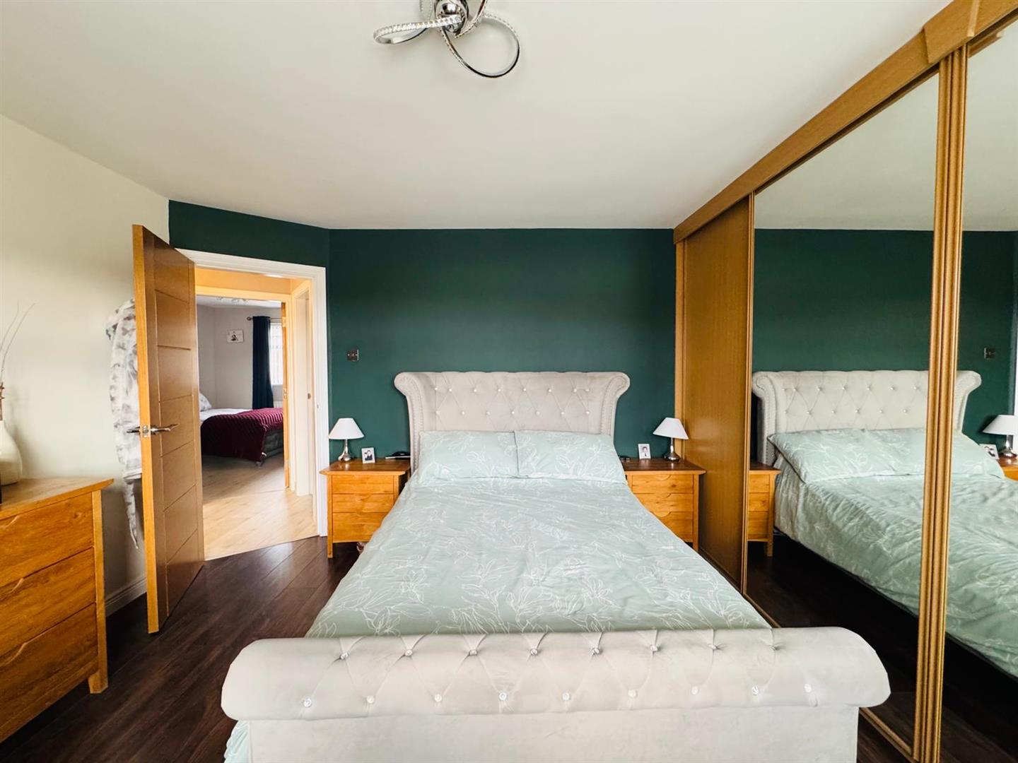 4.06m x 3.89m (13'4" x 12'9") - Having wall to wall built in wardrobes with sliding doors, laminated wooden floor.
