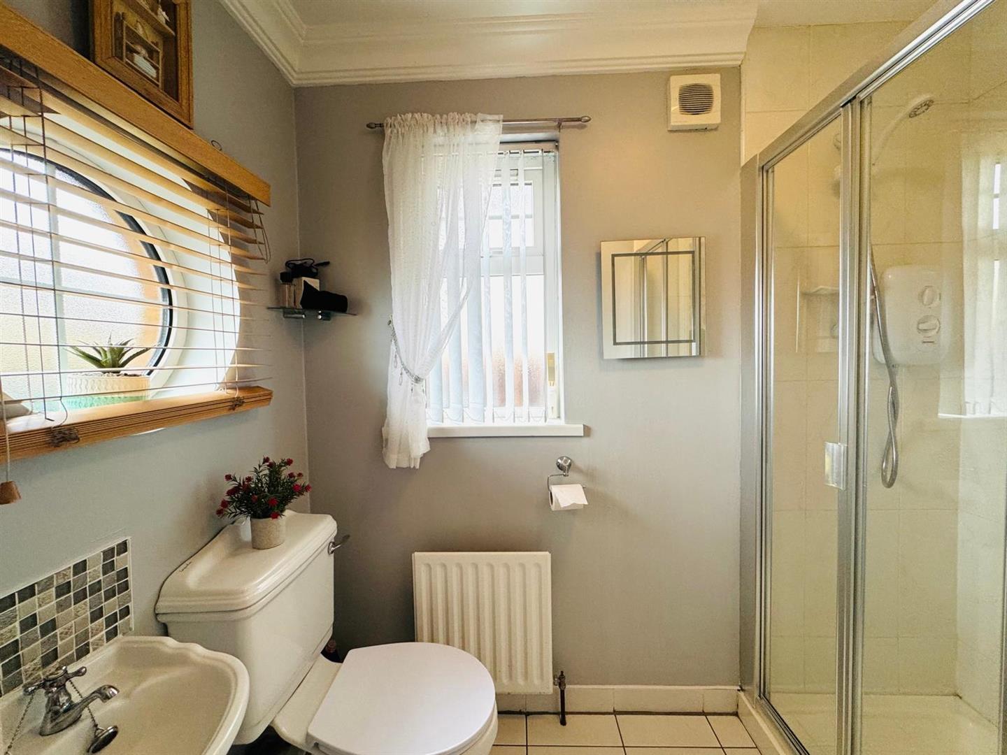 Comprising fully tiled walk in electric shower, whb and wc, tiled floor.