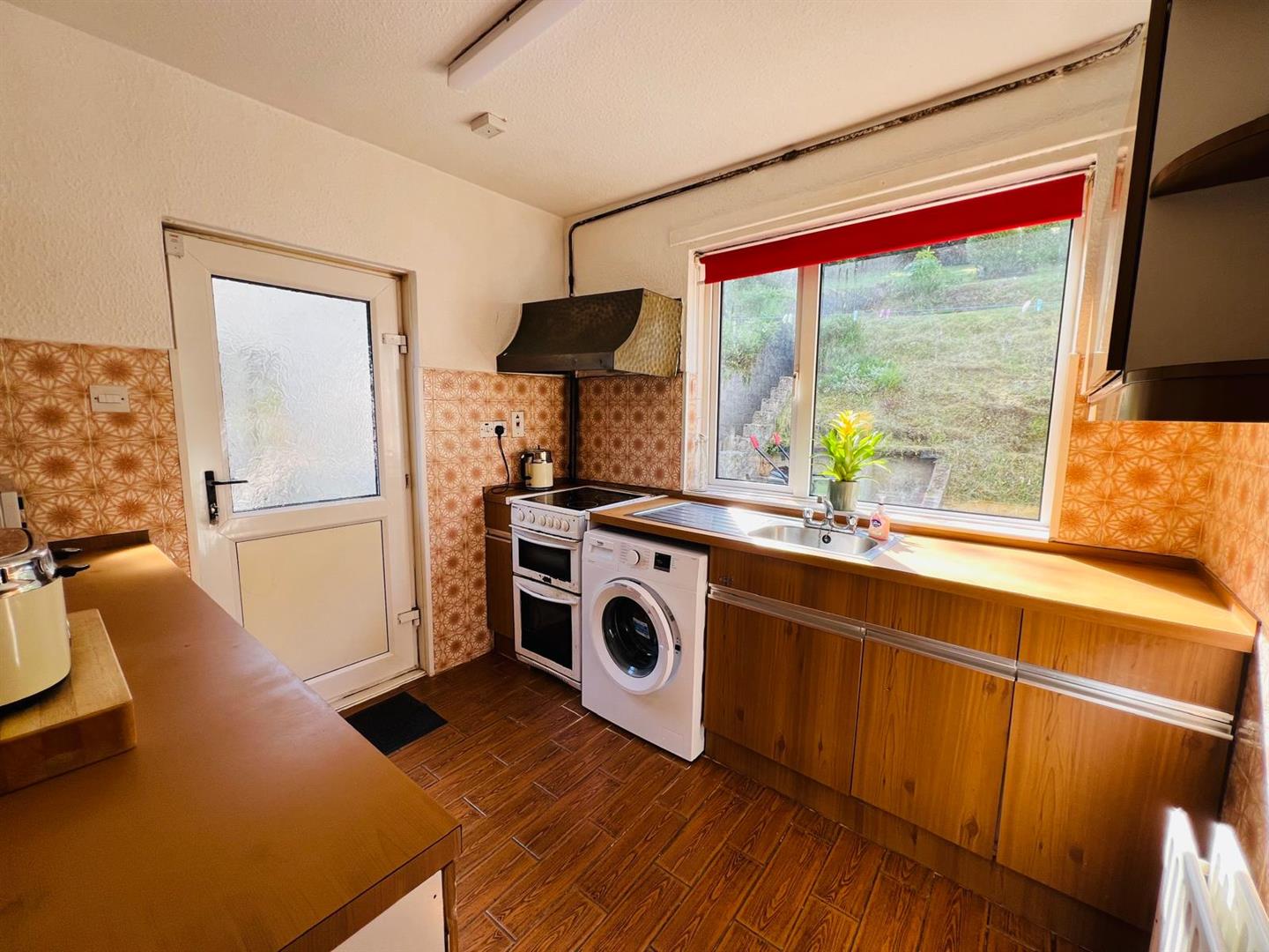 2.74m x 2.54m (9' x 8'4") - Having eye and low level units, single drainer stainless steel sink unit with mixer taps, wired for cooker, plumbed for washing machine, tiled floor.