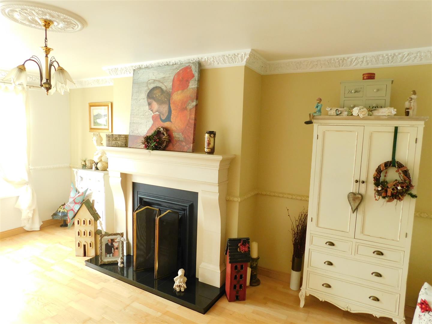 5.54m x 3.56m (18'2" x 11'8") - Having attractive fireplace with back boiler, granite hearth, ceiling cornicing and centre rose, semi-solid wooden floor.
