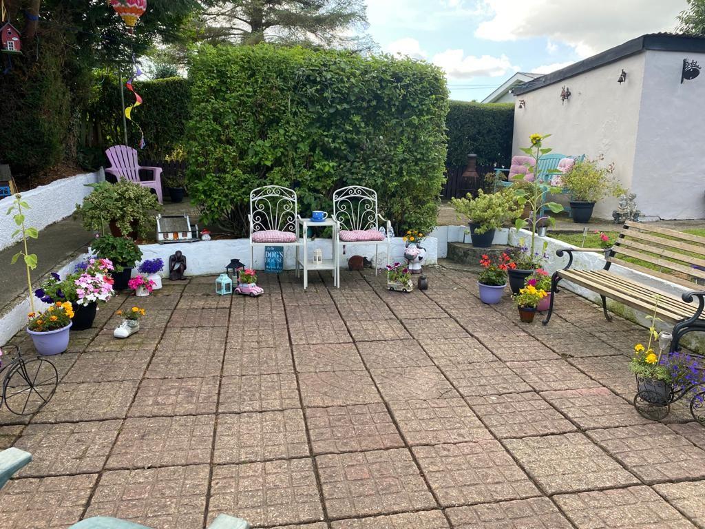 There is a driveway to the side of the property. Neat rear lawn and paved patio area. It is enclosed by fence and gate. Shed