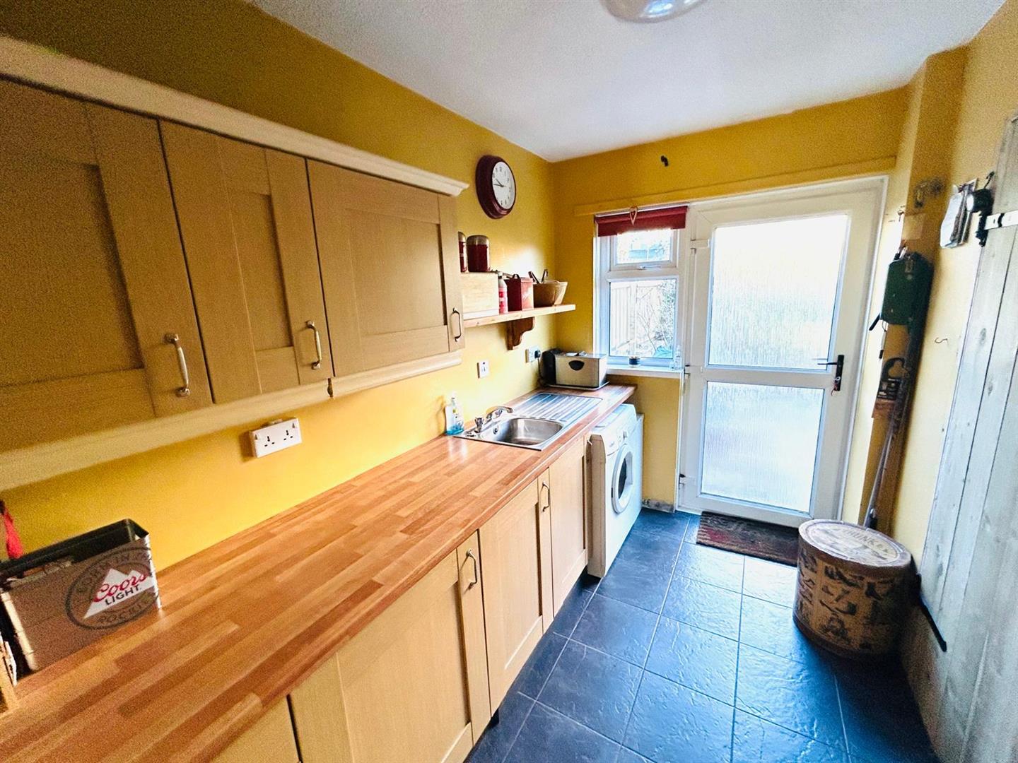 2.97m x 1.88m (9'9" x 6'2") - Having eye and low level units, single drainer stainless steel sink unit with mixer taps, plumbed for washing machine, tiled floor.