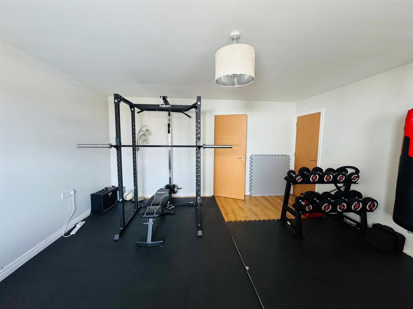 Comprising bath, fully tiled walk in electric shower, whb and wc, recessed lighting, tiled floor.