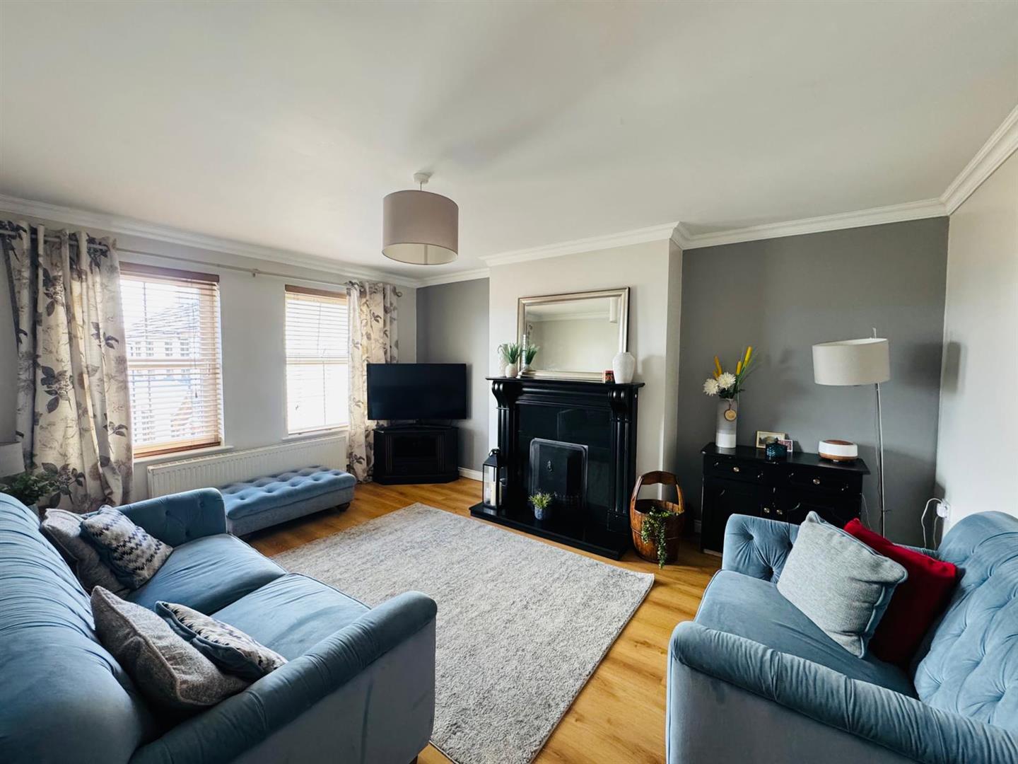 4.72m x 3.58m (15'6" x 11'9") - Having fireplace, ceiling cornicing and laminated wooden floor.
