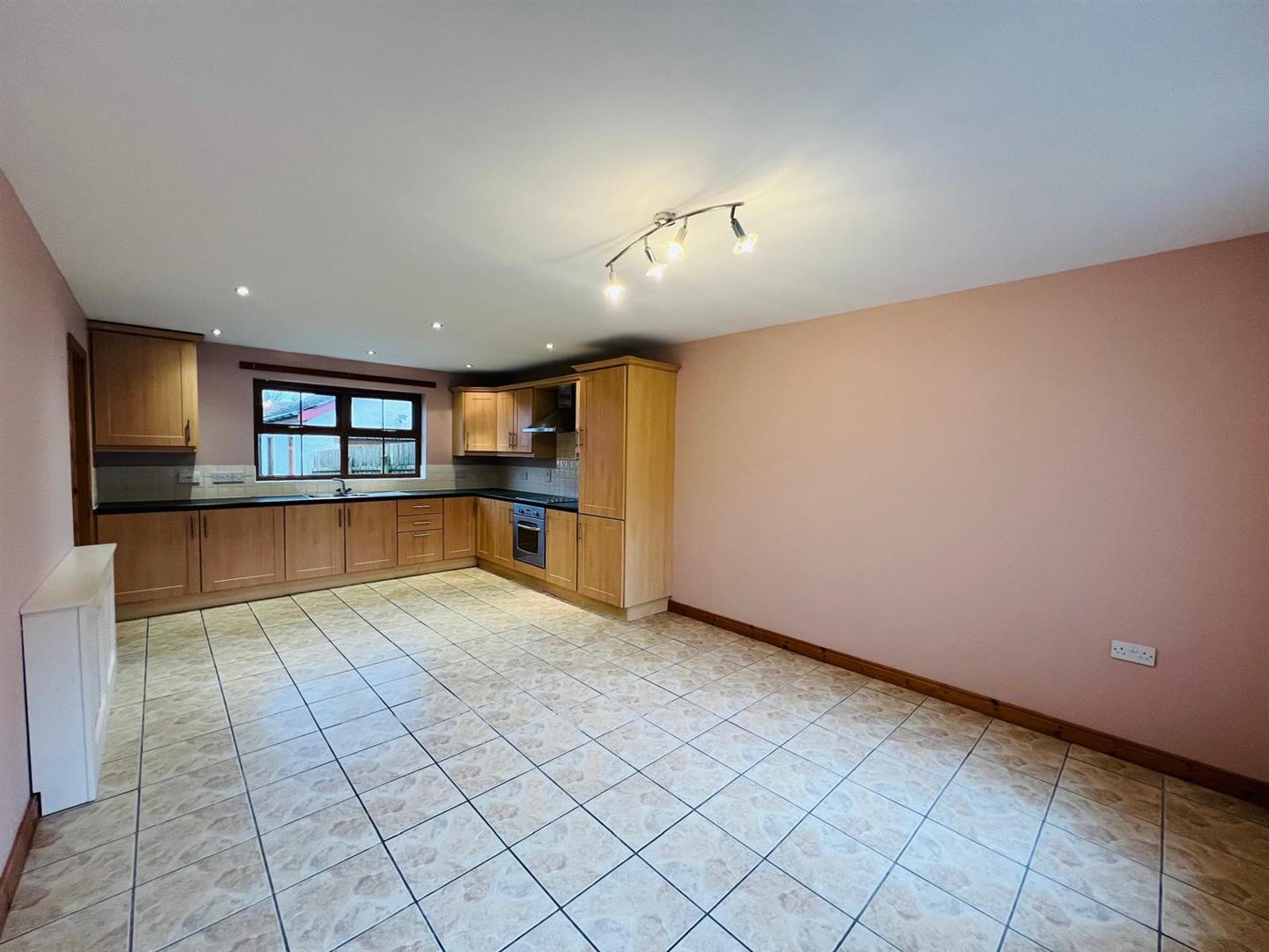 6.81m x 3.68m (22'4" x 12'1") - Having eye and low level units, tiling between units, 1 1/2 bowl stainless steel sink unit with mixer taps, hob and underoven, stainless steel extractor hood, integrated fridge/freezer, ample dining space, kitchen area having recessed lighting, tiled floor.