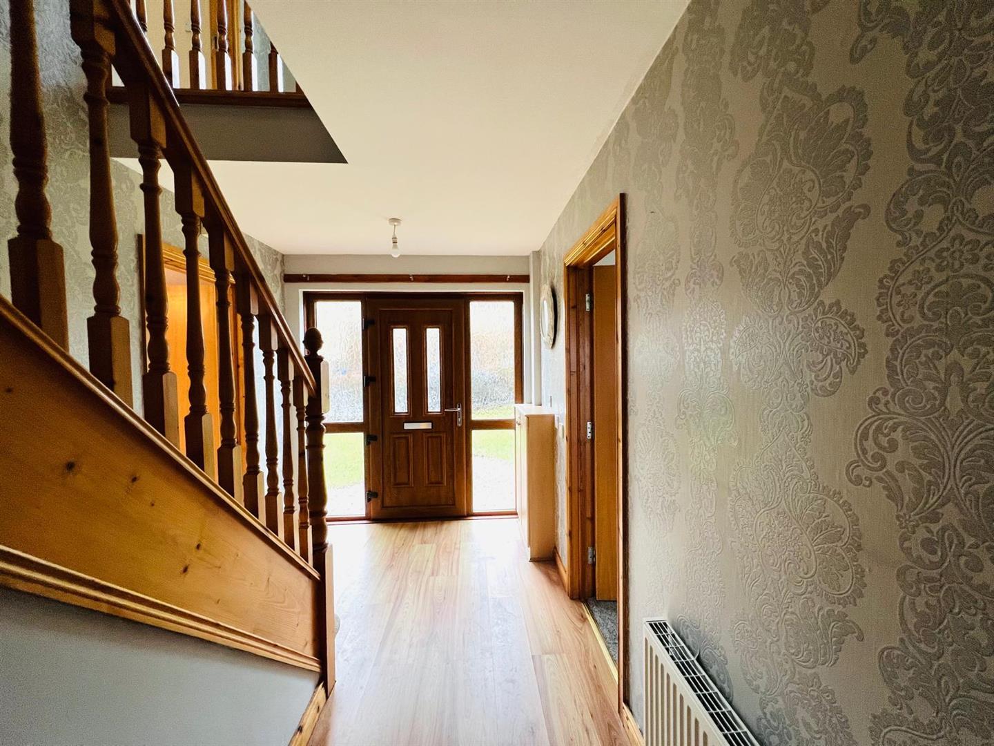 Ard Grange development. The accommodation is spacious with well proportioned rooms laid out over two floors. It has many features including pvc double glazed windows, oil fired central heating, 4 bedrooms (master having en-suite) and bathroom. It is in good condition throughout and has recently been redecorated and carpeted throughout. This property is further enhanced by excellent outdoor space, paved patio and detached garage. It is in close proximity of shops, schools and other local amenities.