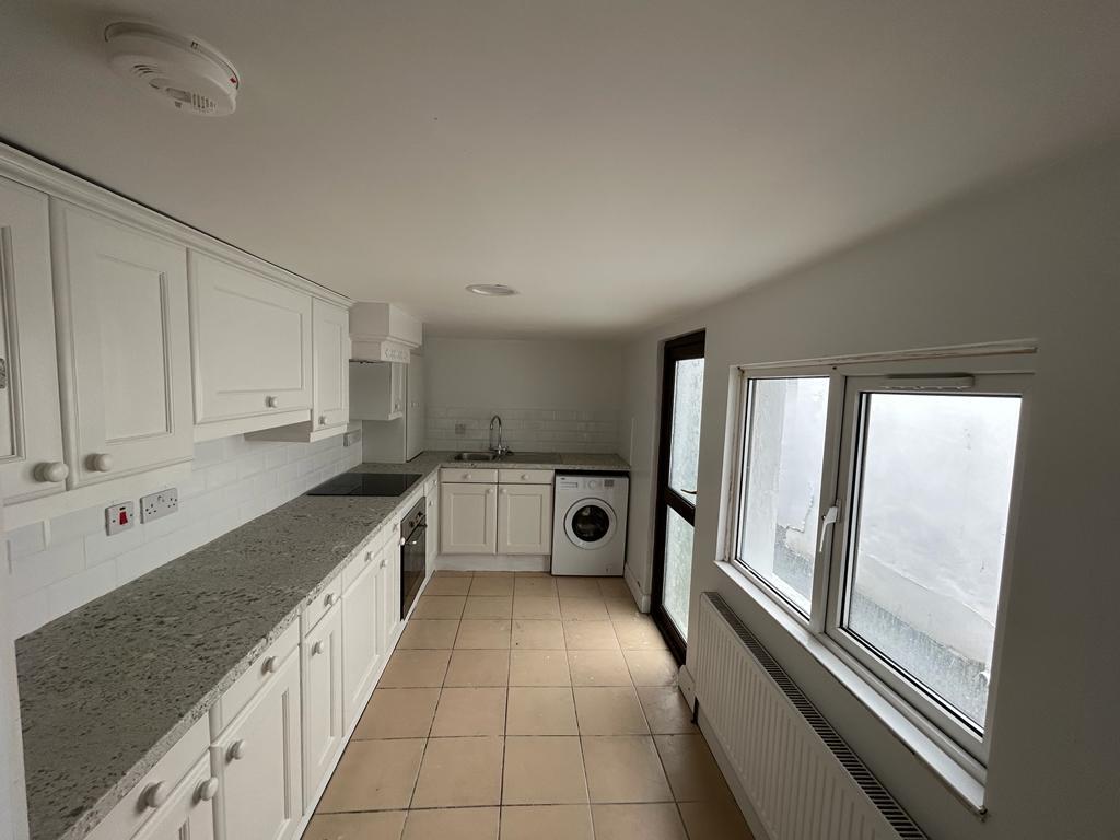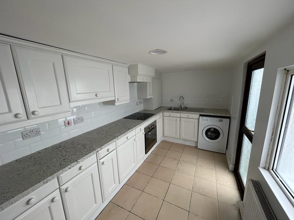 4.22m x 2.13m (13'10" x 7') - Having eye and low level units, tiling between units, single drainer stainless steel sink unit with mixer taps, integrated hob and underoven, plumbed for washing machine, space for fridge / freezer, tiled floor.