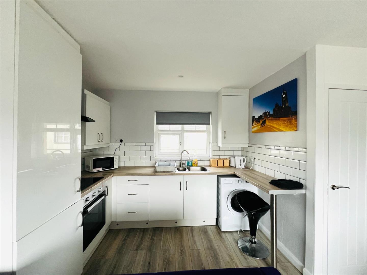 4.93m x 3.84m (16'2" x 12'7") - Having range of eye and low level units with feature under lighting, 1 1/2 bowl stainless steel sink unit with mixer taps, hob, underoven, extractor hood, breakfast bar, integrated fridge / freezer, plumbed for washing machine, laminated wooden floor.