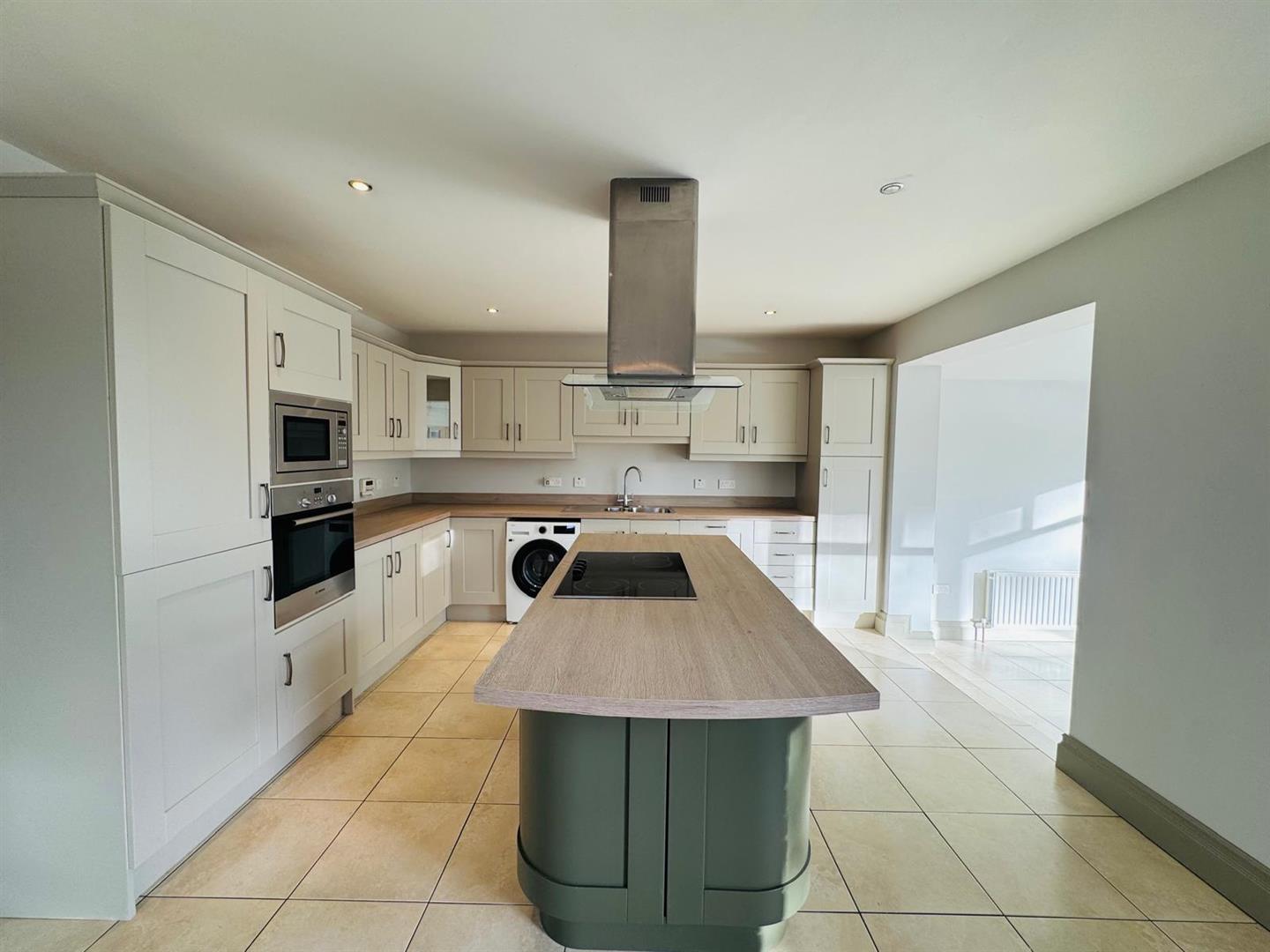 7.67m x 4.09m into bay (25'2" x 13'5" into bay) - Having eye and low level units, 1 1/2 bowl stainless steel sink unit with mixer taps, centre island with hob and storage under, stainless steel extractor hood, integrated fridge/freezer, microwave and oven, plumbed for washing machine, integrated dishwasher, recessed lighting in kitchen area, dual aspect, tiled floor, steps to Sunroom.