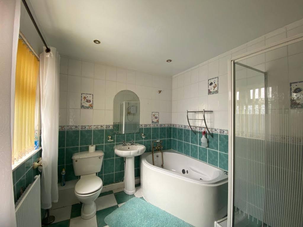 Comprising 'Jacuzzi' style bath, walk in electric shower, whb and wc, recessed lighting, fully tiled walls and floor.