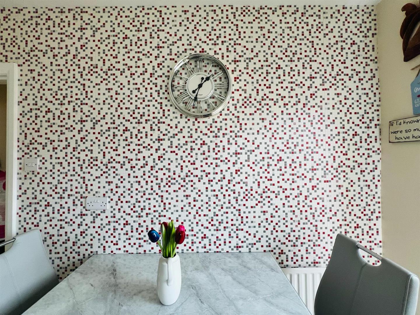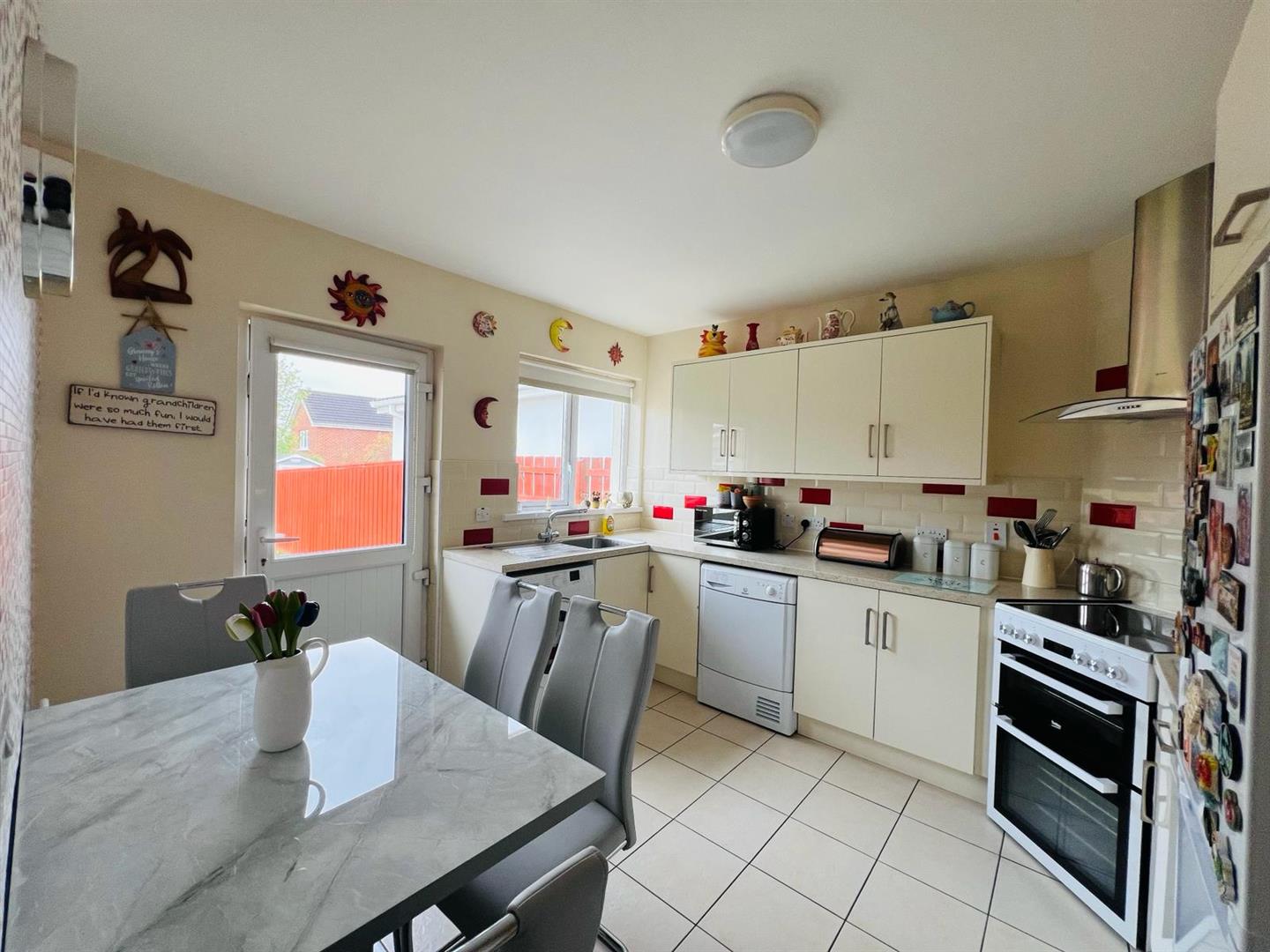 3.48m x 3.18m (11'5" x 10'5") - Having range of eye and low level units, tiling between units, single drainer stainless steel sink unit with mixer taps, plumbed for washing machine, space for tumble dryer, space for fridge / freezer, extractor fan, dining space, tiled floor.