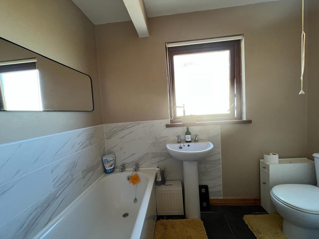 Comprising bath with tiling around, walk in electric shower, whb and wc, tiled floor.
