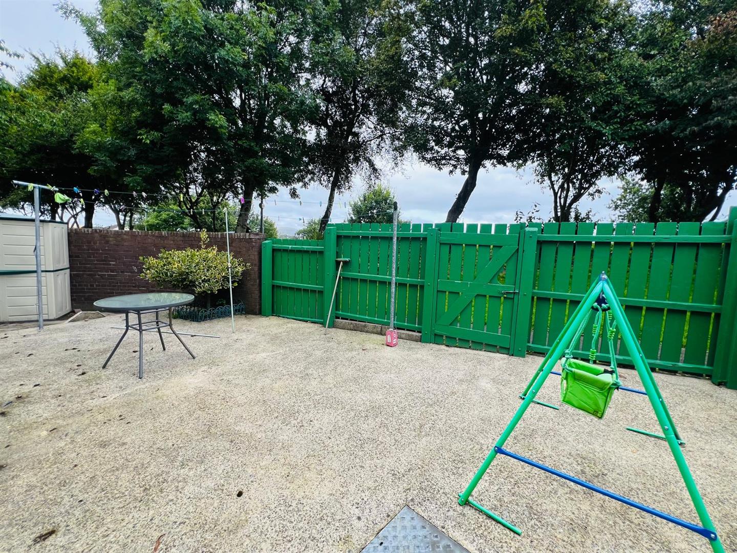 Yard to rear bordered by wall, fence and gate.