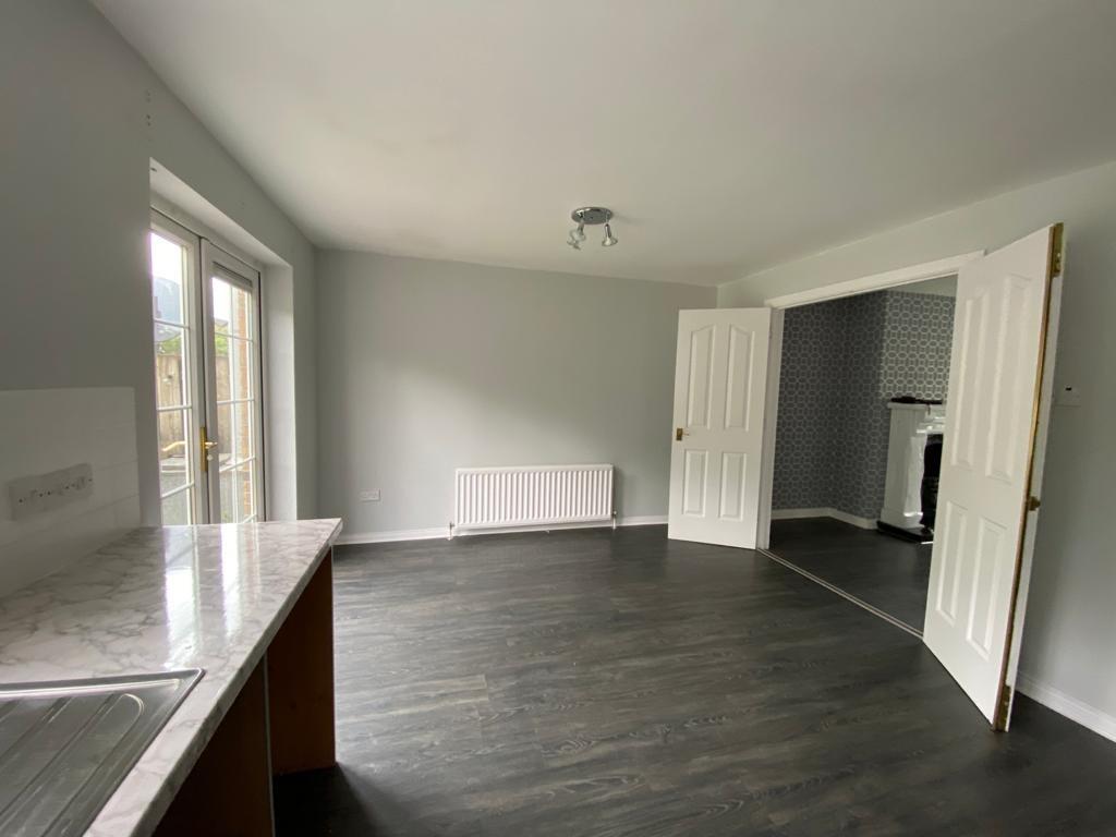 4.60m x 4.11m wp (15'1" x 13'6" wp) - Having attractive firelpace, laminated wooden floor, understairs storage, double doors leading to Kitchen area.