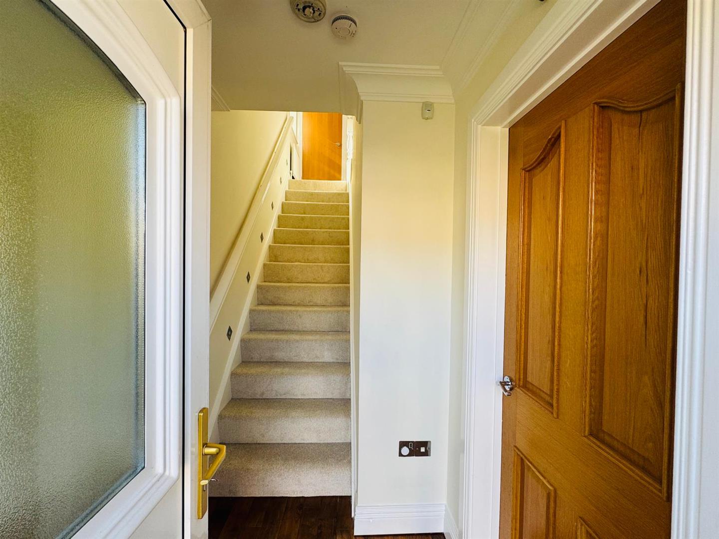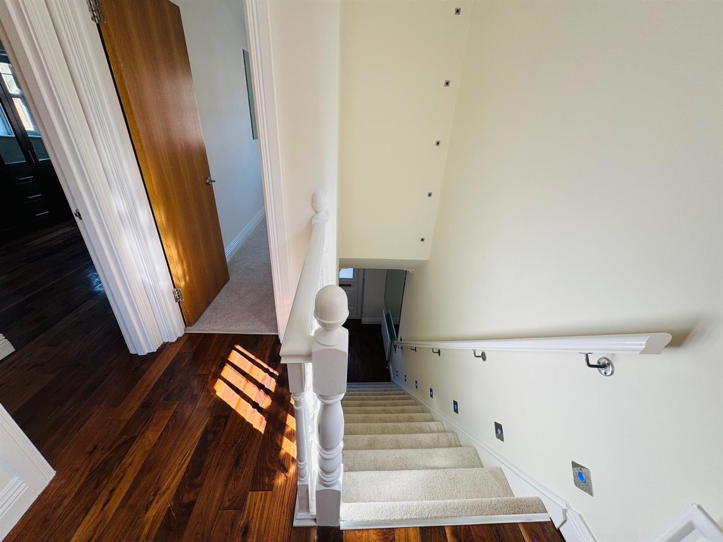 Having ceiling cornicing, wooden floor and staircase with feature lighting.