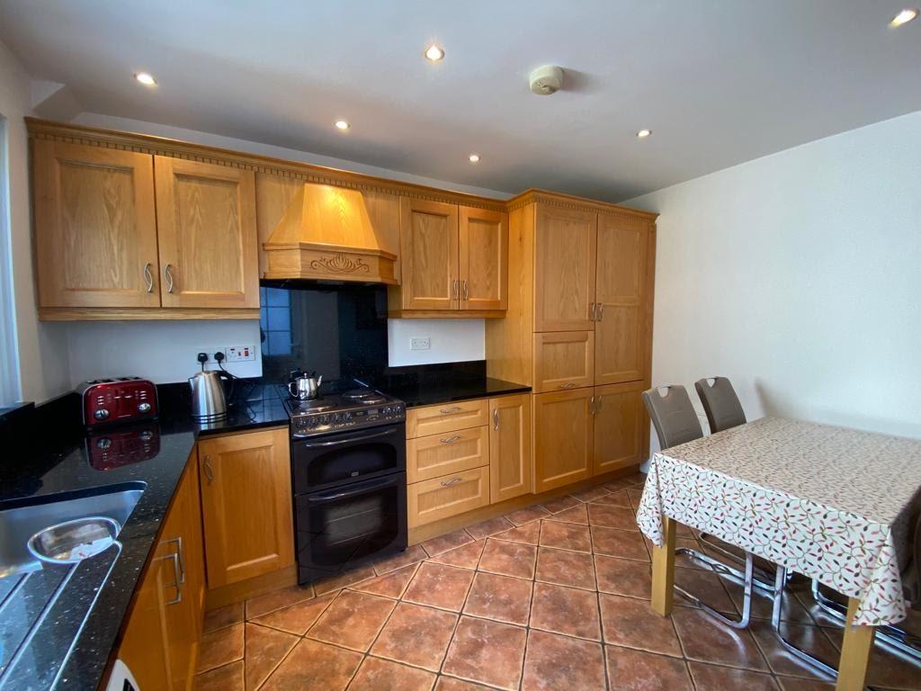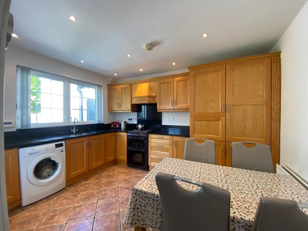 3.78m x 2.84m (12'5" x 9'4") - Having range of eye and low level units, stainless steel sink unit set in granite worktop with matching splashback, extractor canopy, cooker, plumbed for washing machine, integrated fridge/freezer and dishwasher, dining space, recessed lighting, tiled floor.