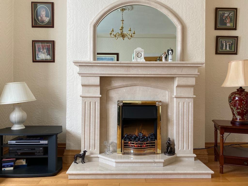 4.50m x 4.06m into bay (14'9" x 13'4" into bay) - Having magnificent ornamental fireplace with electric inset, ceiling cornicing and centre rose, semi-solid wooden floor.