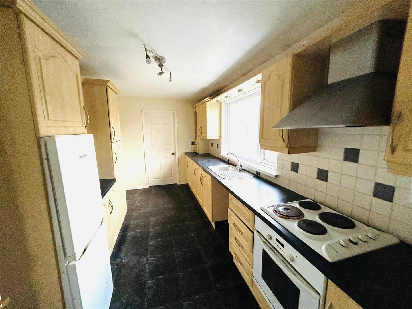 4.52m x 2.46m (14'10" x 8'1") - Having eye and low level units, tiling between units, integrated hob and underoven, stainless steel extractor hood, space for fridge / freezer, plumbed for washing machine, tiled floor.
