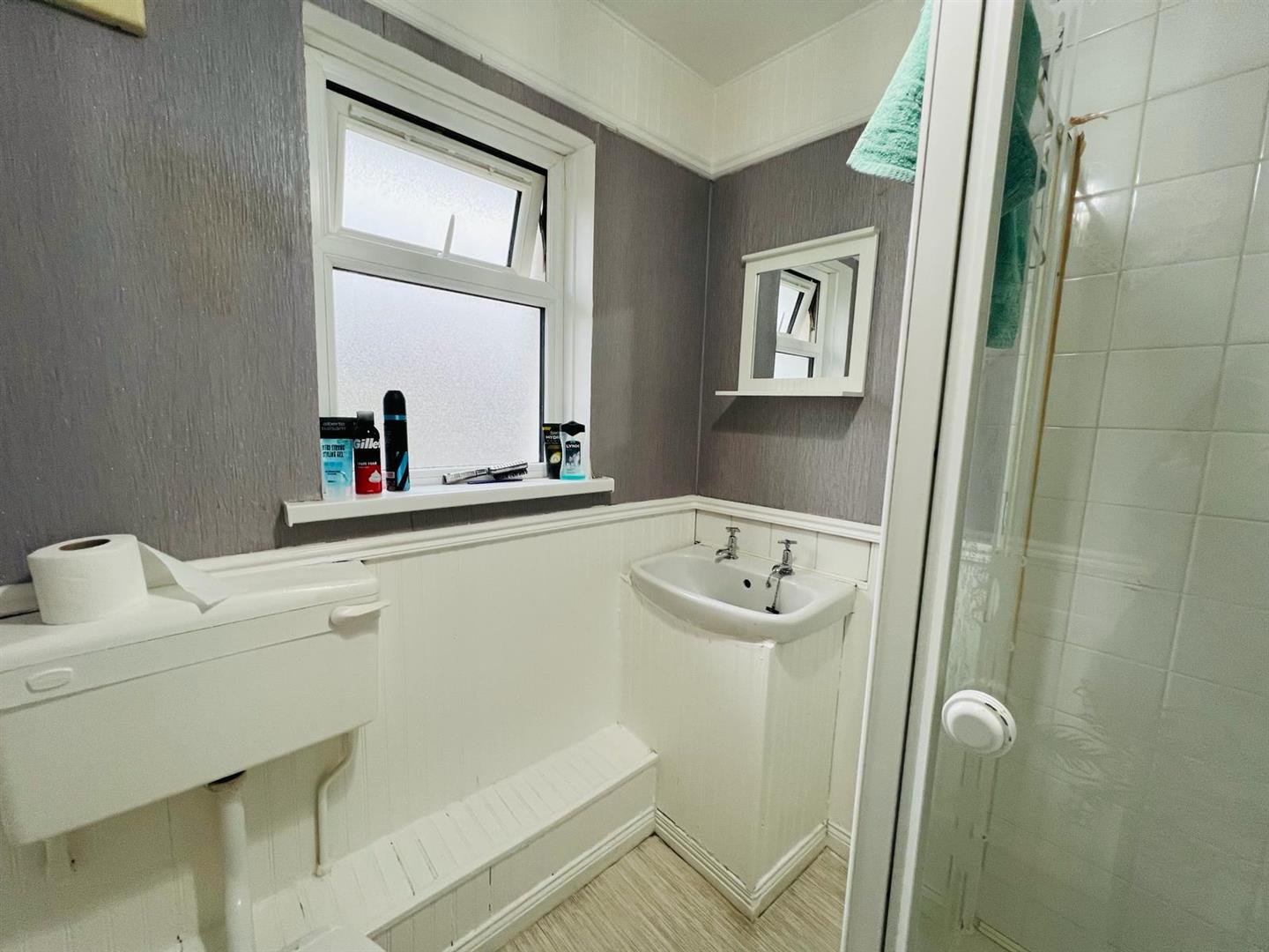 Comprising walk in electric shower with tiling around, whb and wc, extractor fan.