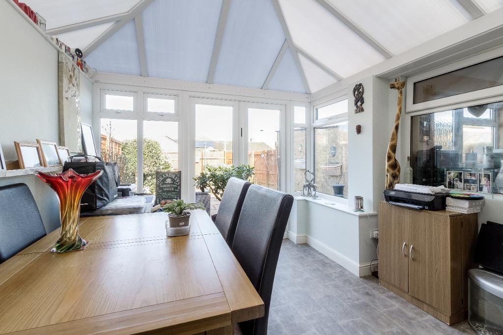 13' 10'' x 14' 10'' (4.24m x 4.54m) Spacious and inviting room featuring coving and stylish wooden flooring. A UPVC sliding door provides seamless access to the conservatory extension, while double doors lead into the modern kitchen, enhancing the open and airy feel of the space. Two radiators.