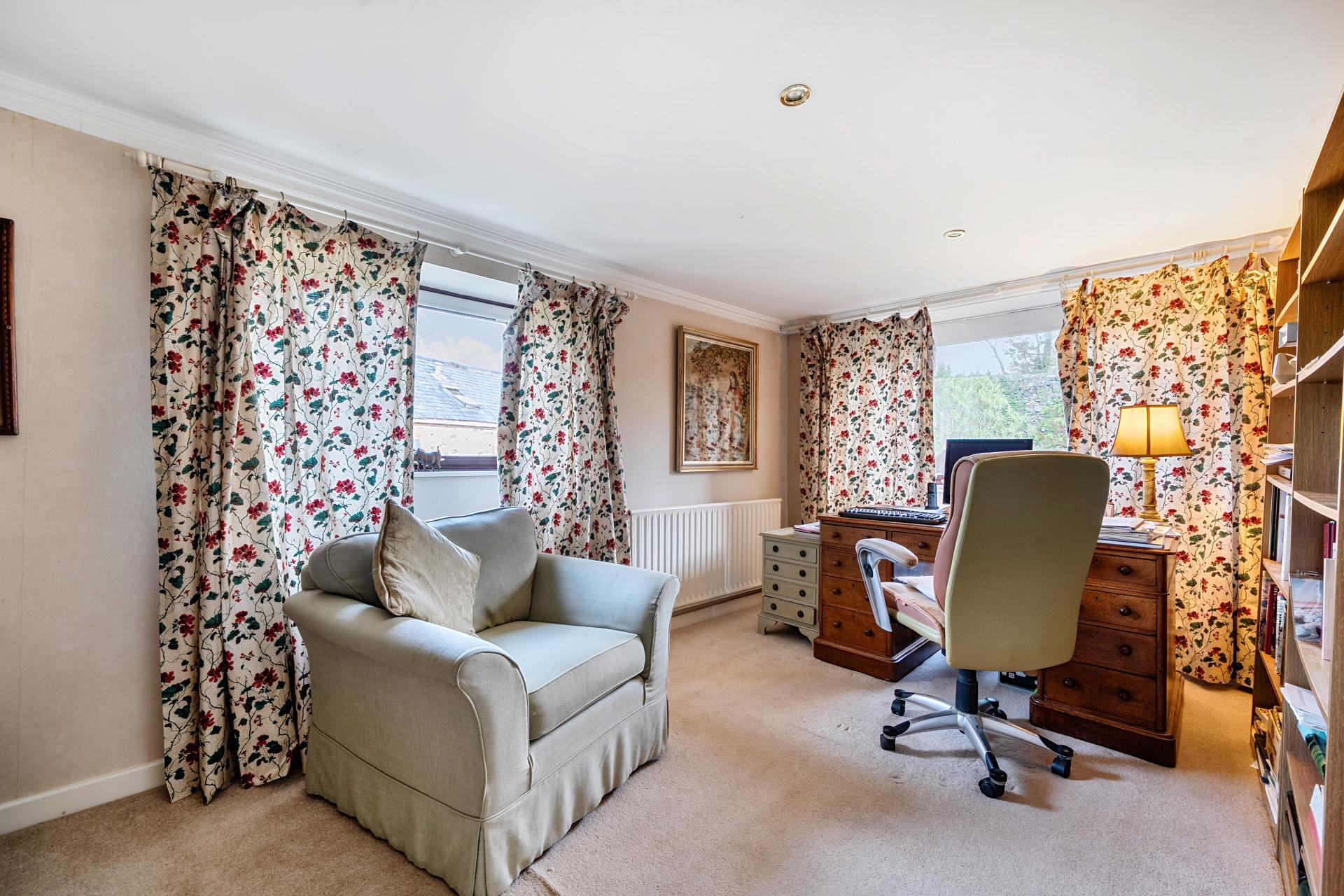 One of Pittmoor's most appealing spaces is the garden room, positioned to make the most of the outlook across the gardens and surrounding countryside. Flooded with natural light and enjoying direct access to the outside, this room is ideal as a second sitting room, reading room or peaceful retreat throughout the seasons. Also, laid out to this end of the house is a useful studio room, offering excellent flexibility as a home office, creative space or hobbies room, allowing day-to-day living and working to be comfortably separated.
