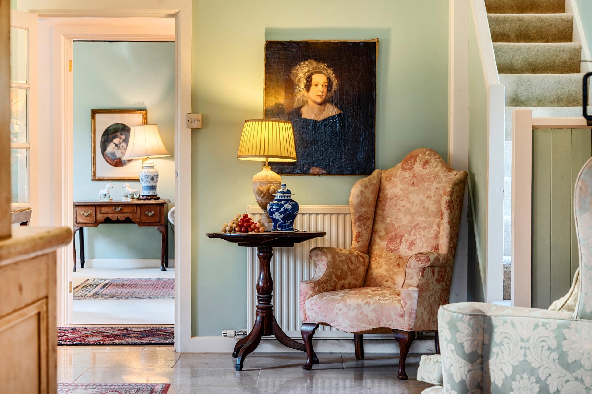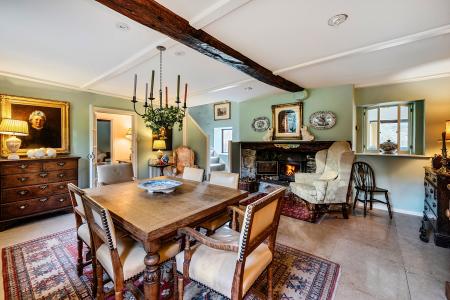 ACCOMMODATION From the private parking at the front of the house, the front door opens into the entrance hall that sits at the heart of the home, linking the main ground-floor accommodation and creating a well-balanced layout suited to both everyday family living and entertaining. The main sitting room is a wonderfully atmospheric space, centred around a substantial stone fireplace with wood-burning stove. Exposed ceiling beams, deep-set windows and garden views create a warm and inviting room - ideal for relaxed evenings or family gatherings.