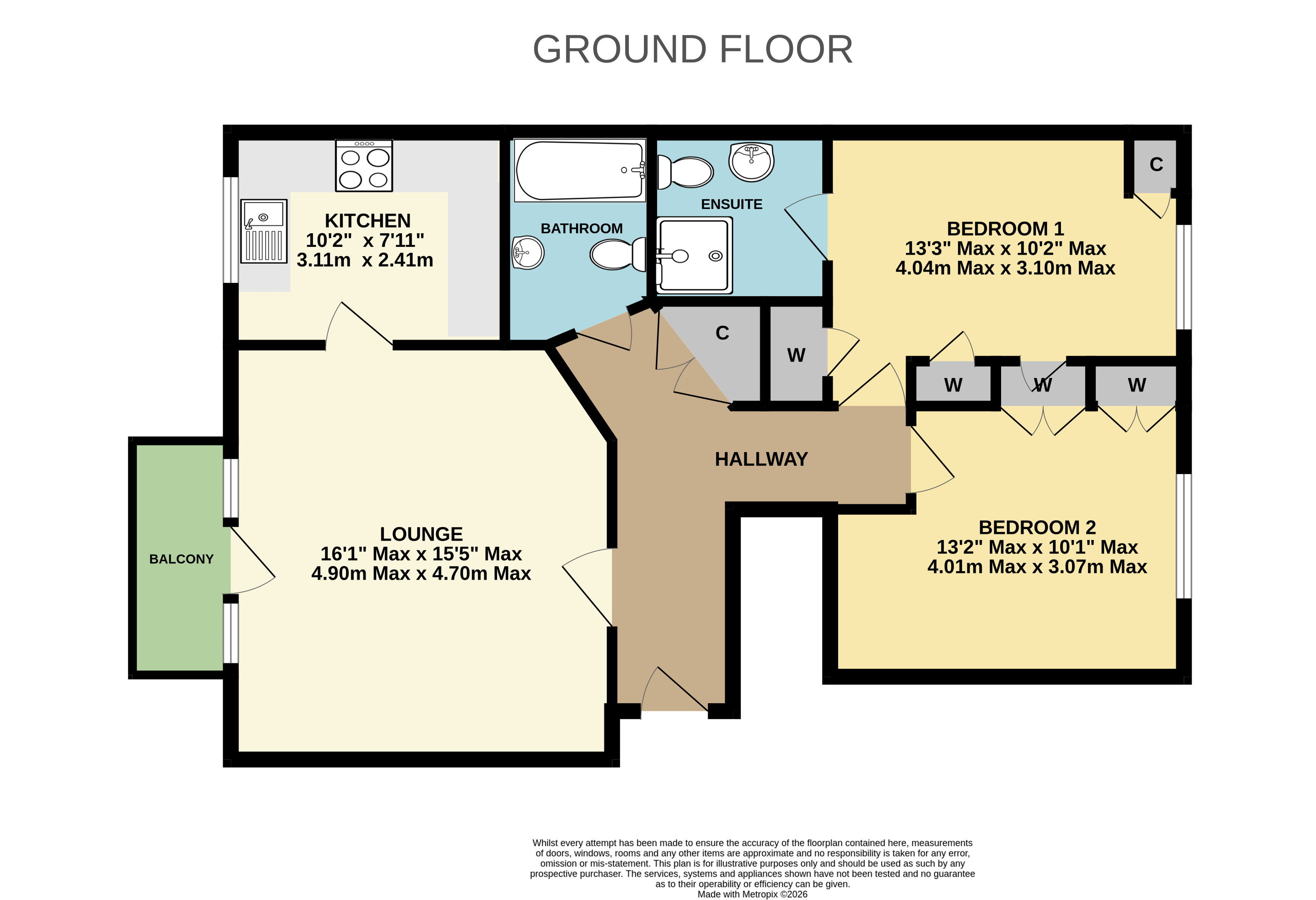 Additional storage cupboards are located within the hallway, providing ample storage throughout the apartment.