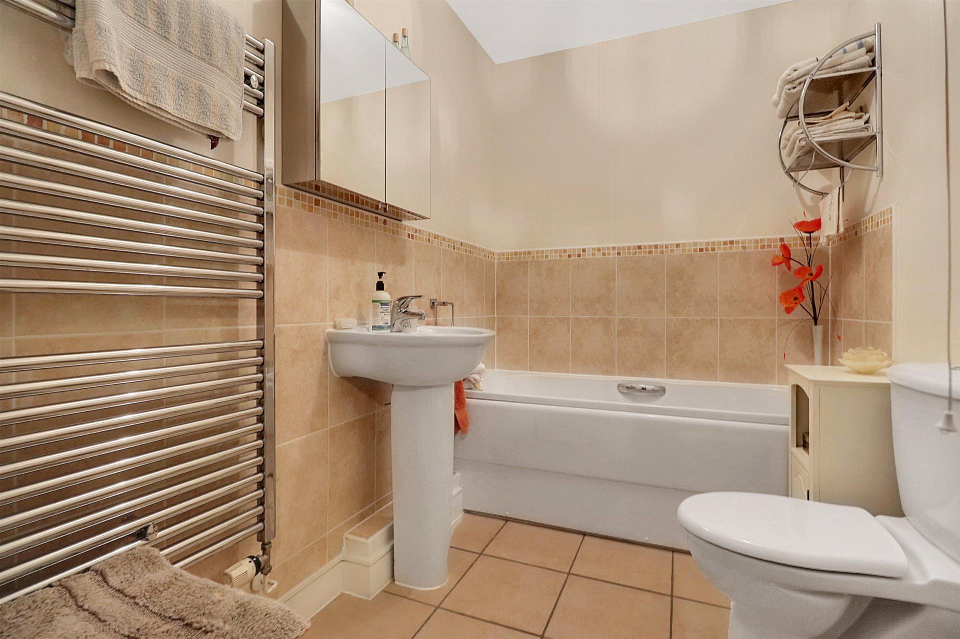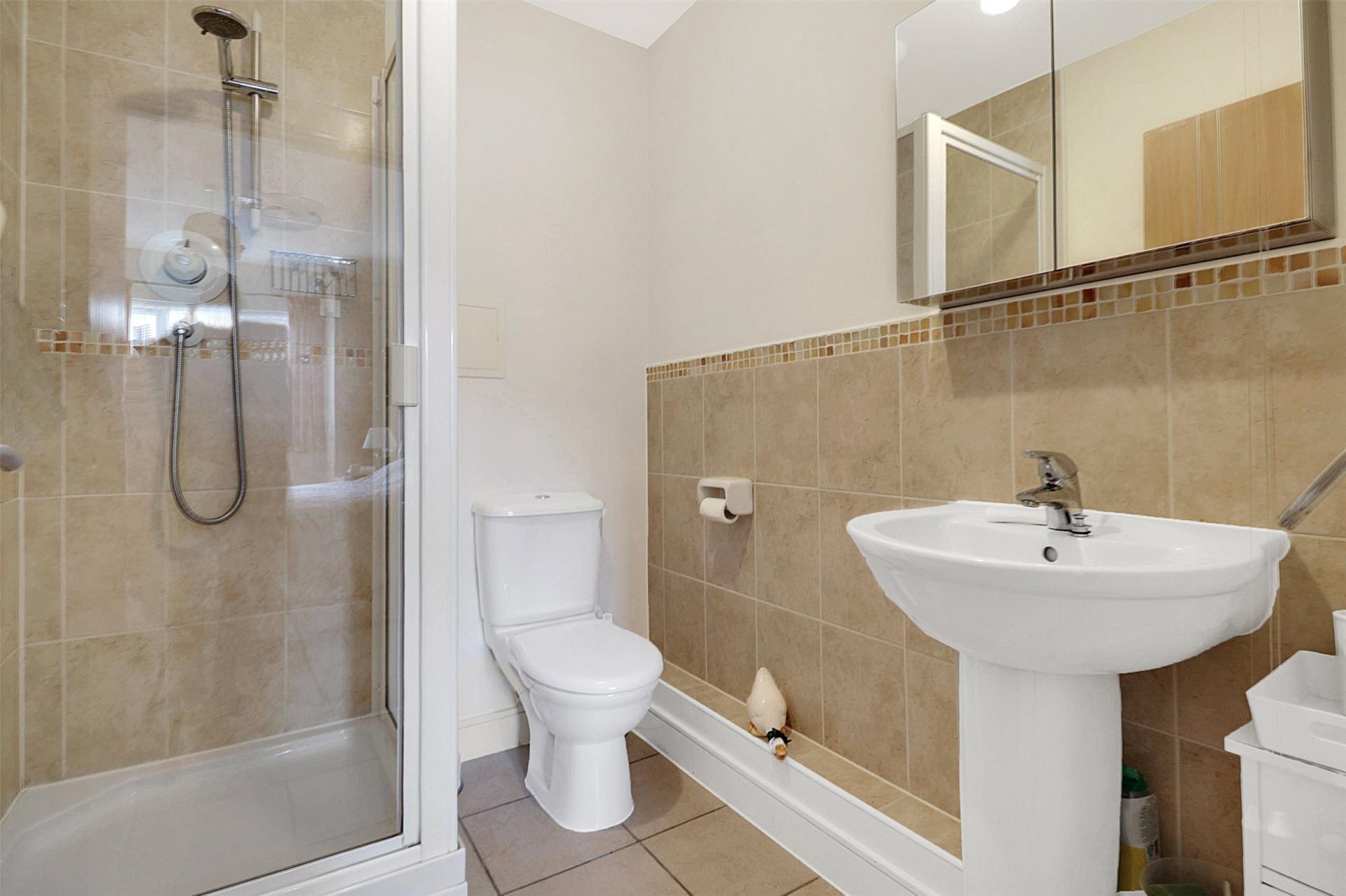 Returning to the hallway, you will find a modern white three-piece suite bathroom and two well-proportioned double bedrooms. The master bedroom benefits from built-in storage and an en suite shower room, while the second bedroom is also a generous double and includes built-in storage.