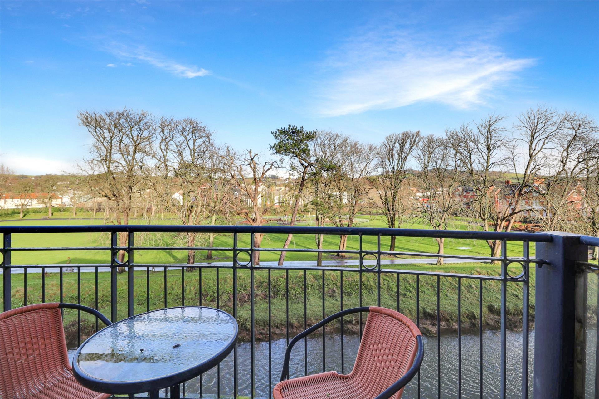 Upon entry, you are welcomed by a spacious hallway that leads directly into the lounge, a bright and inviting entertaining space filled with natural light and featuring doors that open onto a private balcony. The balcony enjoys pleasant views overlooking Pilton Park, creating a lovely outlook and an ideal place to relax. Directly off the lounge is the fitted kitchen, which is well appointed with a range of wall and base units, integral appliances to include oven, hob, fridge freezer, and further attractive views over the park.