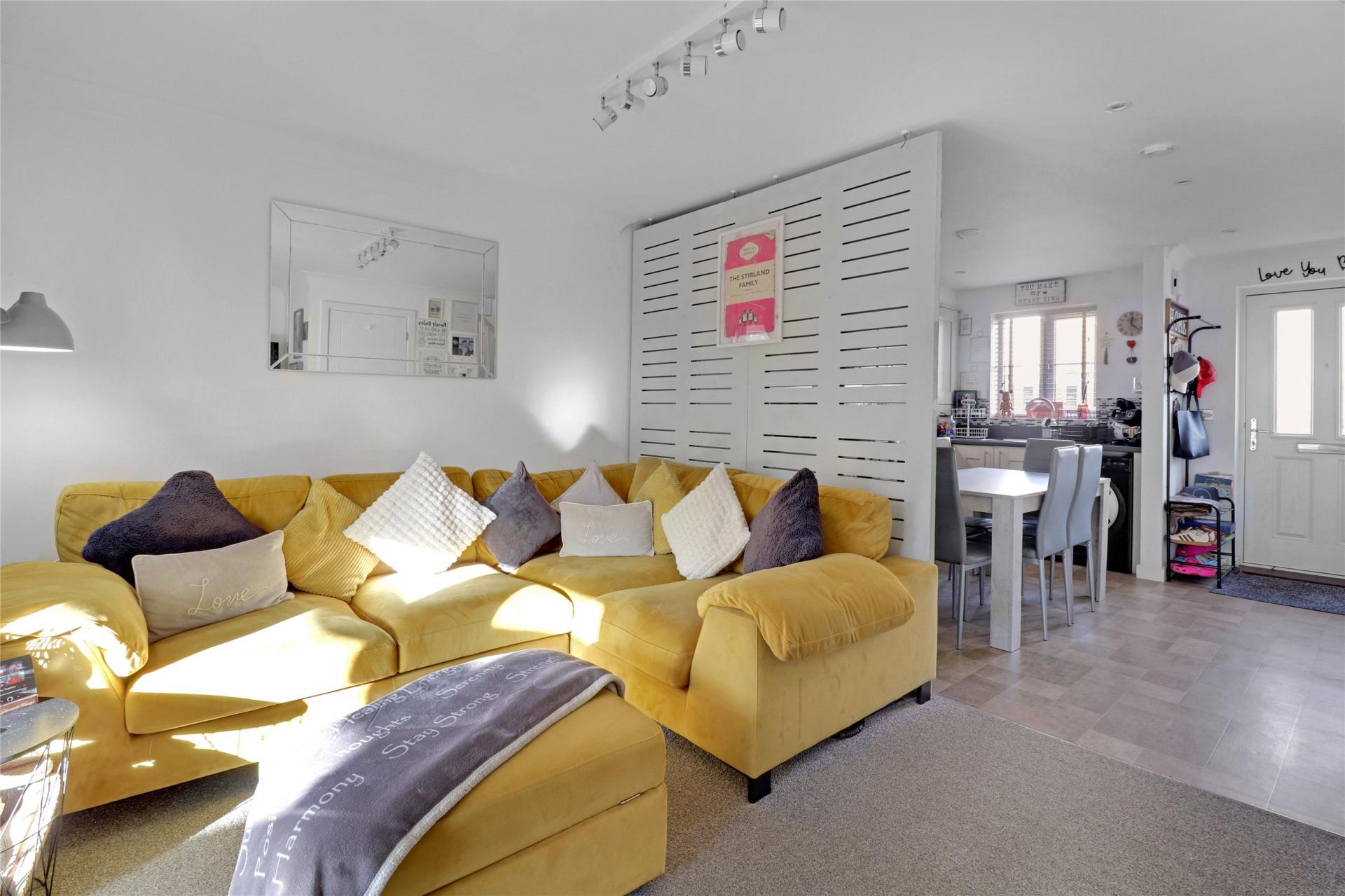 The living area provides a cosy and inviting space to relax, complete with a useful under-stairs storage cupboard.